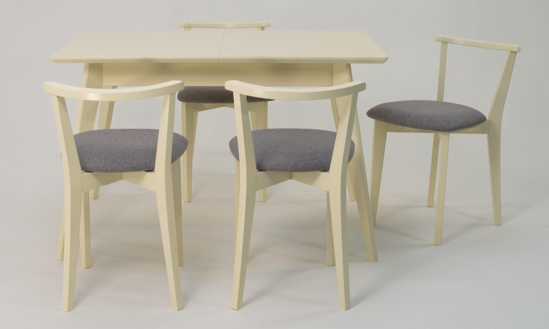 Стол ZiP-mebel Стол Сканди 120 слоновая кость со стульями Франк слоновая кость рогожка серый арт. F514100S00X4R100709S01