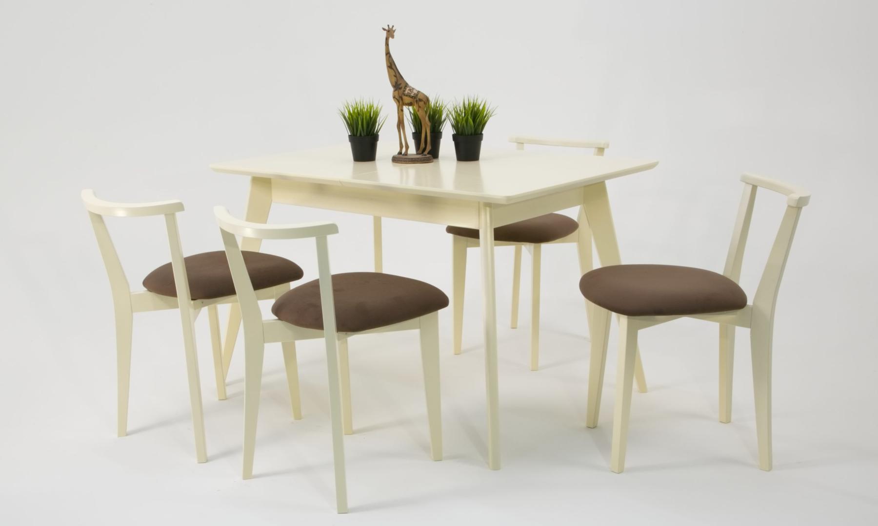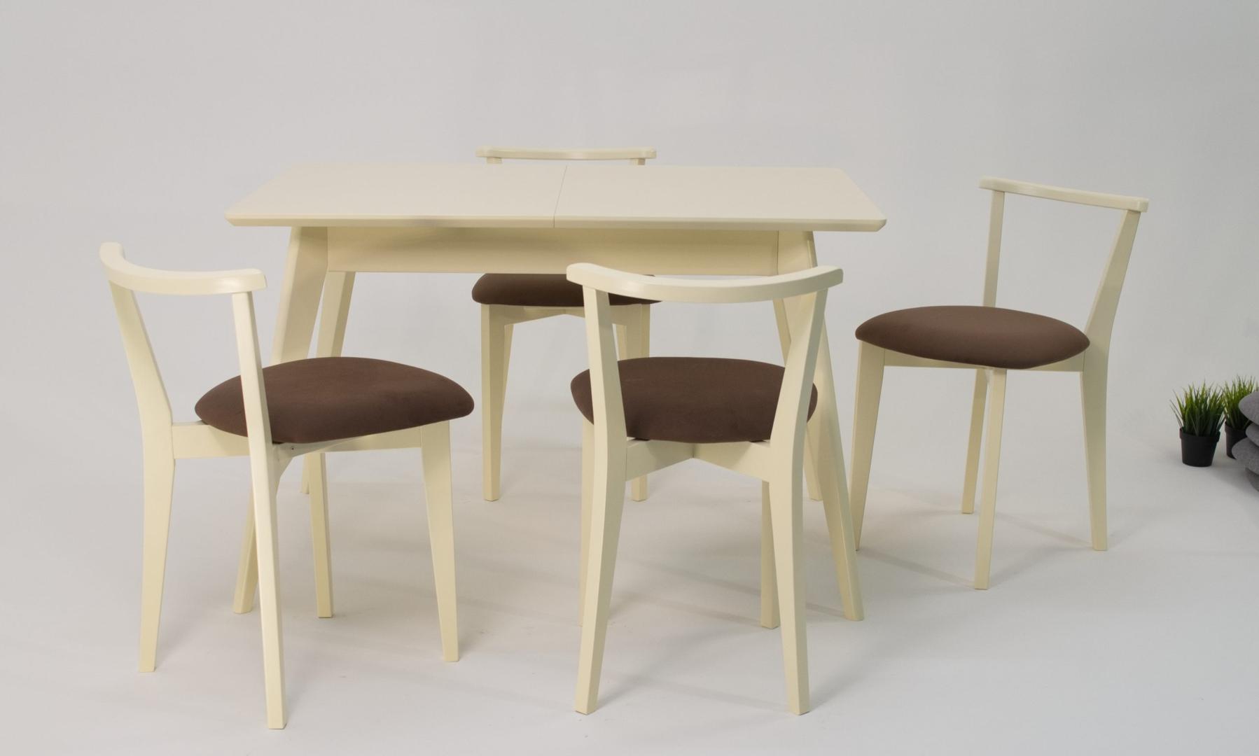 Стол ZiP-mebel Стол Сканди 120 слоновая кость со стульями Франк слоновая кость велюр коричневый арт. F514100S00X4R100709S04