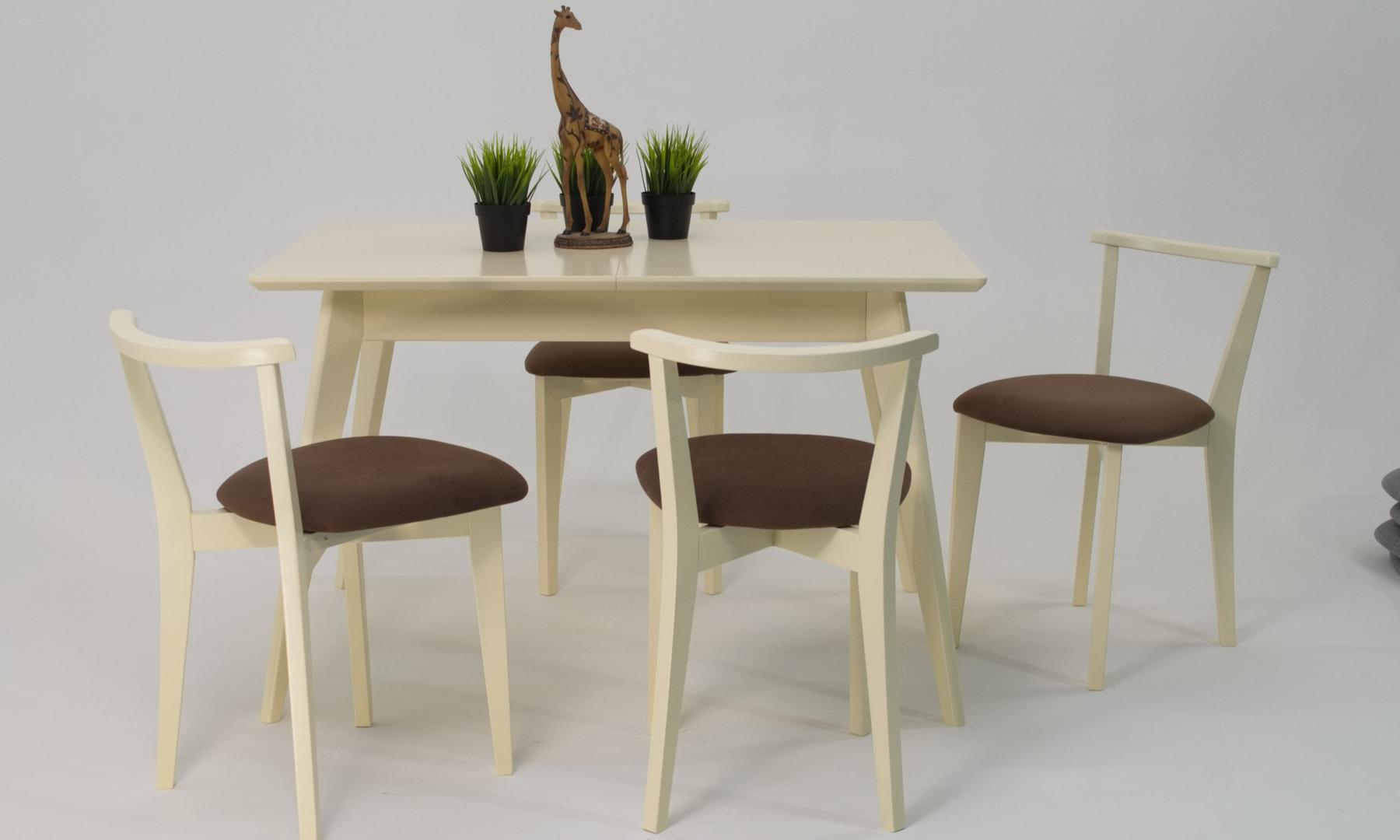 Комплект из деревянного стола Сканди на каркасе из натурального дерева и 4 стула Франк отлично подойдет к интерьеру, выдержанному в скандинавском стиле. Данный комплект станет центральным элементом в гостиной, столовой зоне, на кухне, позволив создать уютное обеденное место, где смогут собираться члены дружной семьи и их гости.У модели прямоугольная форма столешницы, со скруглением углов. Такое решение исключит риск сколов и обеспечит безопасность, в том числе, детям.Комплект выполнен в красивом цвете - слоновая кость. Сочетание изысканного дизайна и высокого качества исполнения - главная особенность комплекта.Столешница выполнена из материалов с великолепными эксплуатационными свойствами - МДФ (Материал создается на основе натуральной древесины. Практичен, надежен, имеет однородную гладкую структуру), шпон.Мебель проста в уходе - для поддержания первозданного вида достаточно использовать простую чуть влажную салфетку по мере необходимости.Состав комплекта: Стол F514100S00 120x80x75 и 4 стула R100709S04 44x53x73