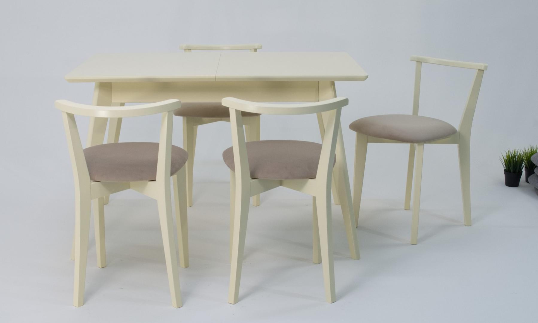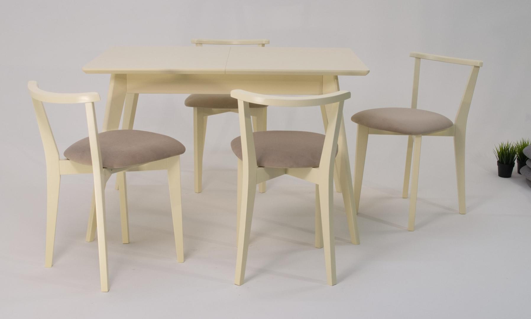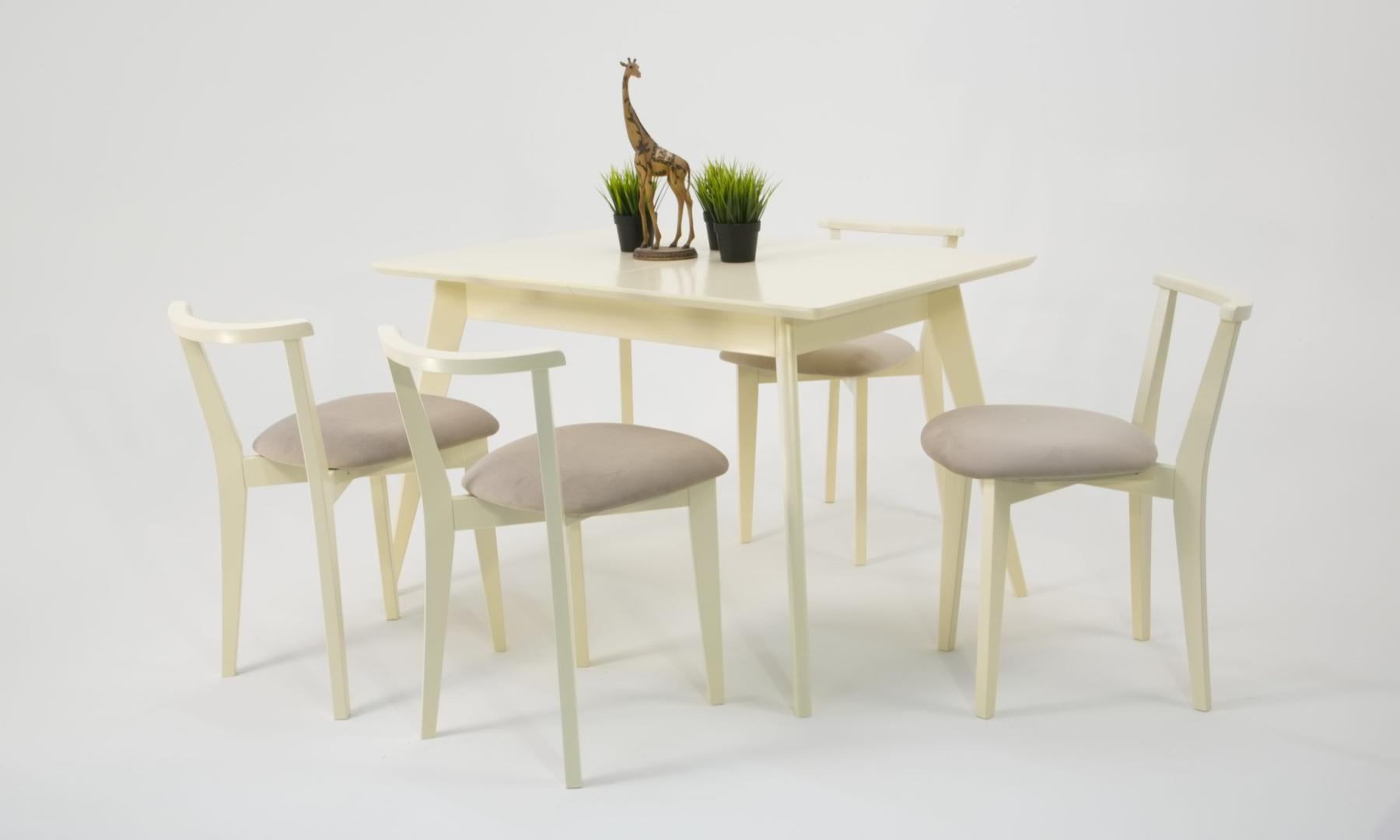 Стол ZiP-mebel Стол Сканди 120 слоновая кость со стульями Франк слоновая кость велюр бежевый арт. F514100S00X4R100704S02
