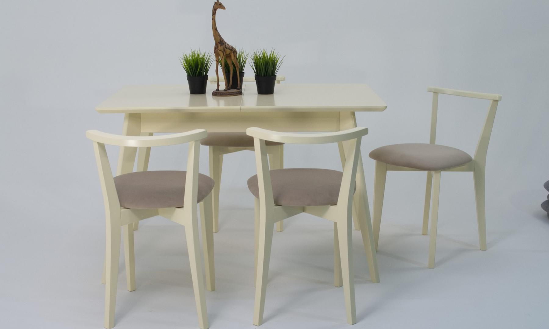 Комплект из деревянного стола Сканди на каркасе из натурального дерева и 4 стула Франк отлично подойдет к интерьеру, выдержанному в скандинавском стиле. Данный комплект станет центральным элементом в гостиной, столовой зоне, на кухне, позволив создать уютное обеденное место, где смогут собираться члены дружной семьи и их гости.У модели прямоугольная форма столешницы, со скруглением углов. Такое решение исключит риск сколов и обеспечит безопасность, в том числе, детям.Комплект выполнен в красивом цвете - слоновая кость. Сочетание изысканного дизайна и высокого качества исполнения - главная особенность комплекта.Столешница выполнена из материалов с великолепными эксплуатационными свойствами - МДФ (Материал создается на основе натуральной древесины. Практичен, надежен, имеет однородную гладкую структуру), шпон.Мебель проста в уходе - для поддержания первозданного вида достаточно использовать простую чуть влажную салфетку по мере необходимости.Состав комплекта: Стол F514100S00 120x80x75 и 4 стула R100704S0244x53x73