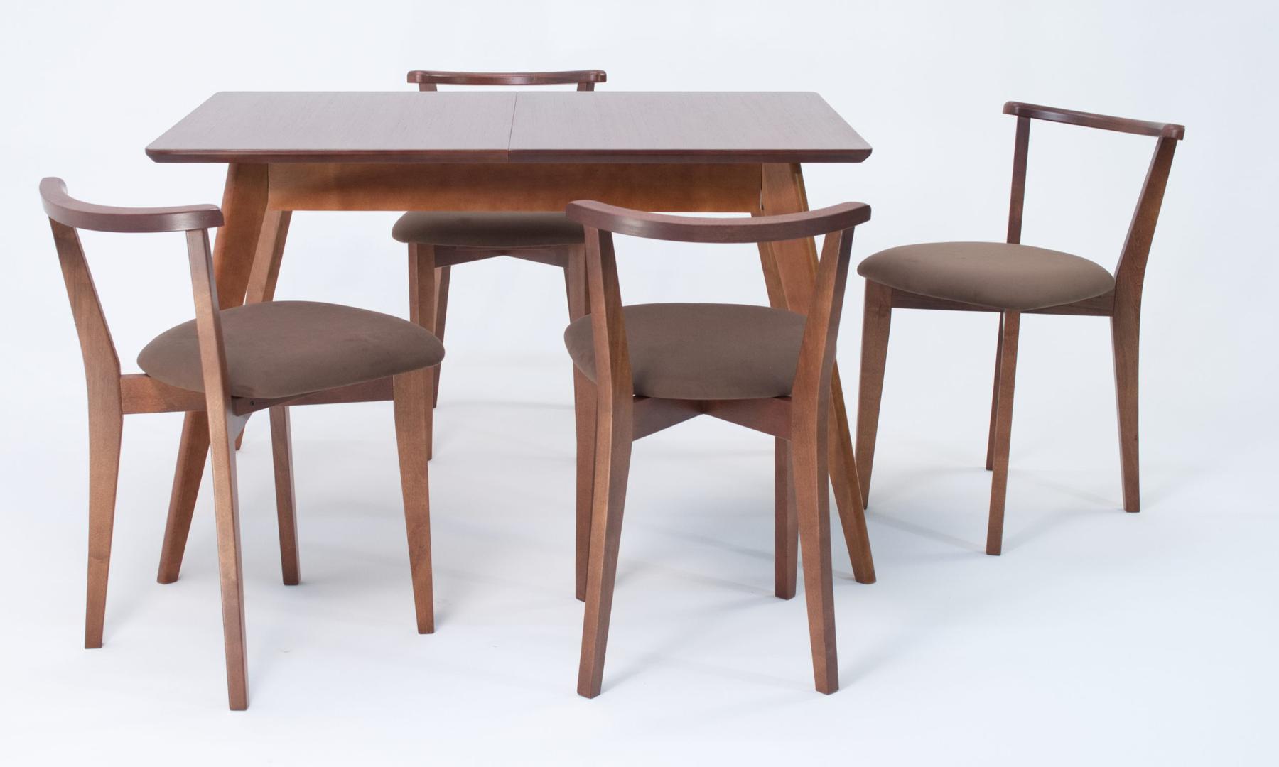 Стол ZiP-mebel Стол Сканди 120 орех со стульями Франк Орех велюр коричневый арт. F514105W00X4R101709W04