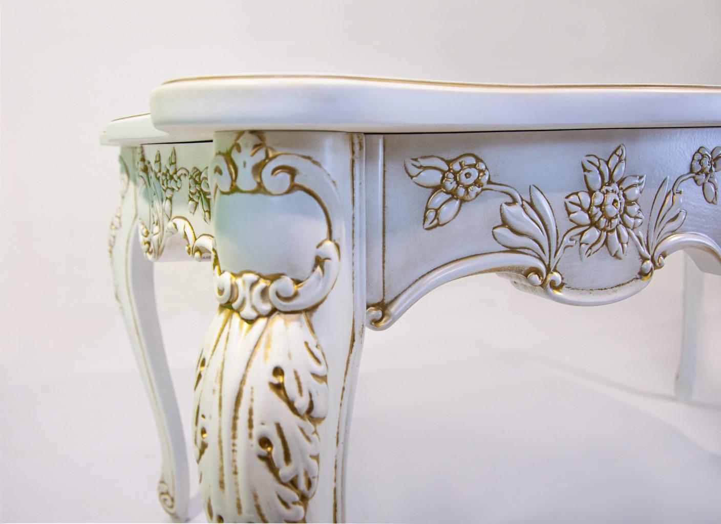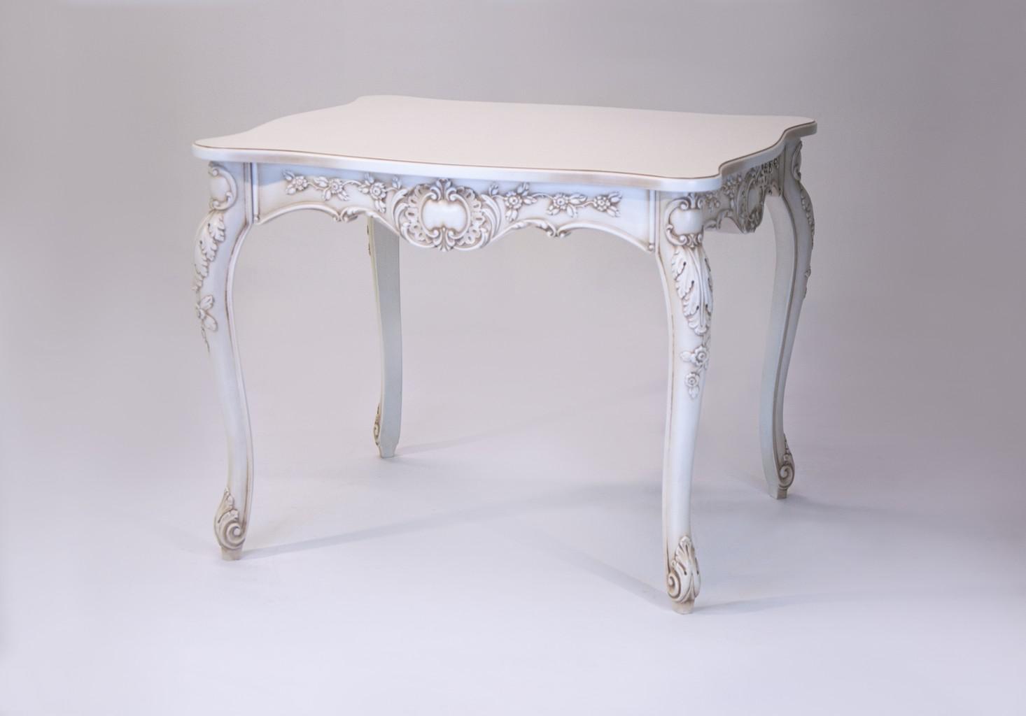 Деревянный стол Венеция может быть выполнен в любом цвете. Размер определяется заказчиком. Форма стола универсальная, прямоугольная столешница, закреплена на четырех устойчивых ножках. Стол отлично подойдет к интерьеру, выдержанному в классическом стиле.У стола тонкие, точёные ножки, с изящной отделкой, что придает его внешнему виду оригинальность и узнаваемость. При этом ножки прочные, устойчивые, выдерживают большие нагрузки, Вы сможете смело ставить даже массивную посуду и габаритные предметы декора. Массив берёзы относится к твёрдым породам древесины, по потребительским характеристикам не уступает более дорогостоящему дубу. Его главные характеристики - долговечность, прочность и практичность. Массив берёзы сохранит свои первоначальные свойства на продолжительный срок даже при интенсивной эксплуатации. У древесины сохранена характерная для нее текстура. Украшением стола служит изящный контур ног и патина.
