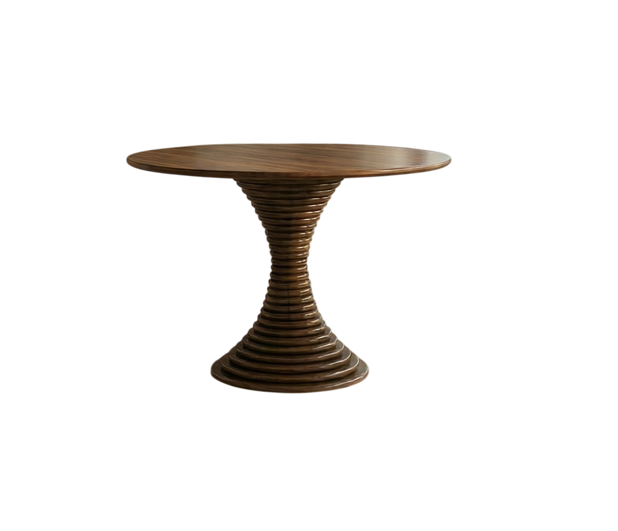 СТОЛ ФЬЮЗЗ — СКУЛЬПТУРНЫЙ МИНИМАЛИЗМ В ВАШЕМ ИНТЕРЬЕРЕСтол «Фьюзз» — это смелое сочетание функциональности и искусства в духе современного дизайна.Уникальный дизайн — выразительное ребристое основание в форме песочных часов превращает стол в настоящий арт-объект, притягивающий взглядыСдержанная элегантность — оттенок орех и гладкая круглая столешница создают идеальный баланс между строгостью и изысканностьюКомпактность — нераскладная конструкция оптимальна для небольших пространств, при этом круглая форма обеспечивает комфортную посадкуУниверсальность — идеально подойдёт для кухни, гостиной, прихожей или современного офисаФьюзз — когда форма встречается с функцией. Добавьте скульптурную выразительность в ваш интерьер!Стиль, который говорит сам за себя.