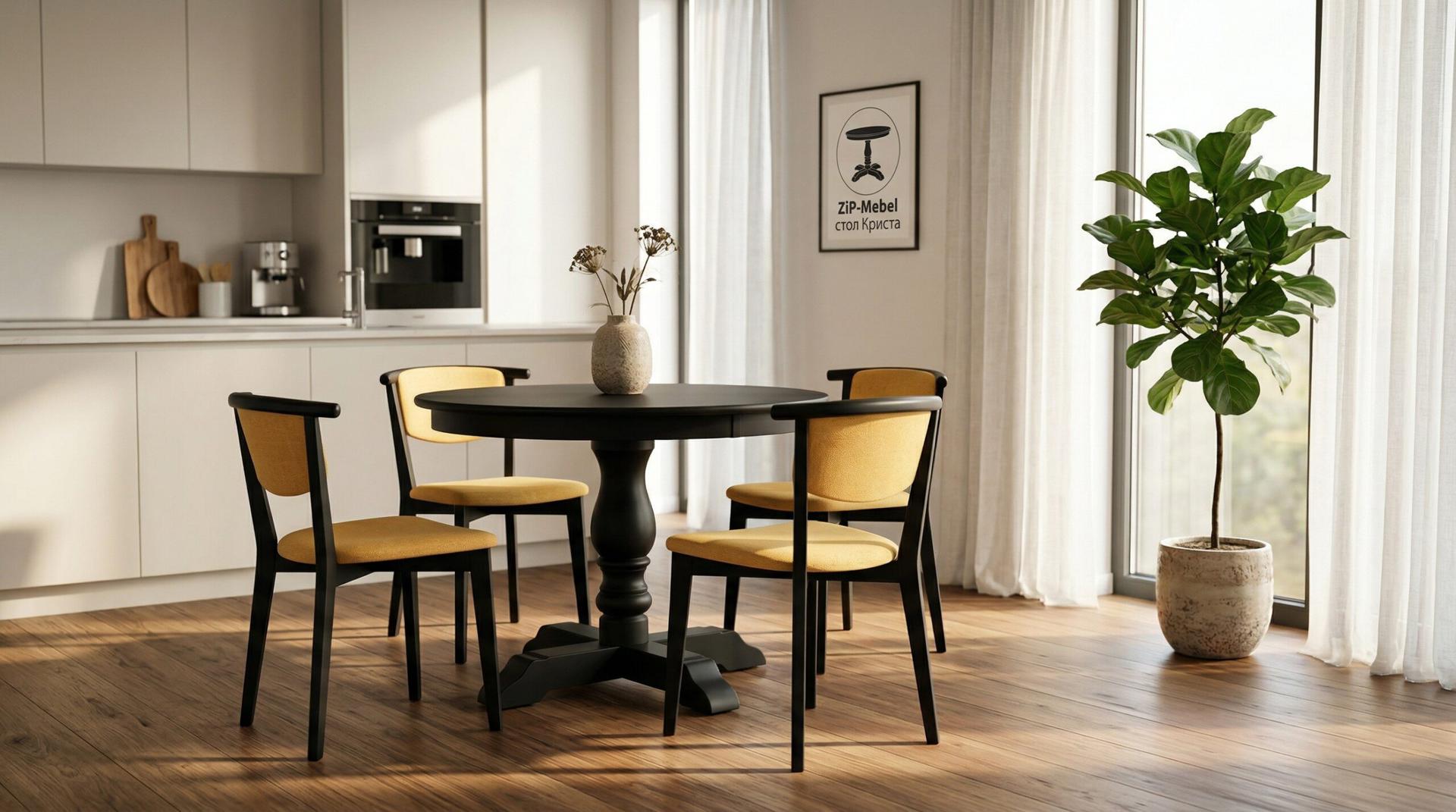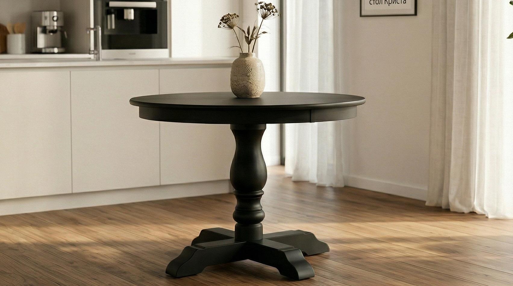 Стол «Криста» — это идеальное сочетание традиционного стиля и современной практичности для вашего дома.Комбинированные материалы — сочетание натурального дерева и качественного МДФ обеспечивает превосходный внешний вид и долговечность конструкцииРаскладная конструкция (+ 30 см) — компактный круглый стол легко превращается в просторную обеденную зону для приёма гостей. Экономия пространства без компромиссов в комфортеБлагородный дизайн — тёмное покрытие, изящная точёная ножка-пьедестал и крестообразное основание придают столу аристократичный вид в стиле современной классикиНадёжность — массивное основание крестообразной формы гарантирует исключительную устойчивость и безопасностьУниверсальность — идеально впишется в интерьер кухни, столовой или гостиной, дополняя как классические, так и современные направления дизайнаКриста — стол, который объединяет за ужином всю семью и создаёт атмосферу домашнего уюта!