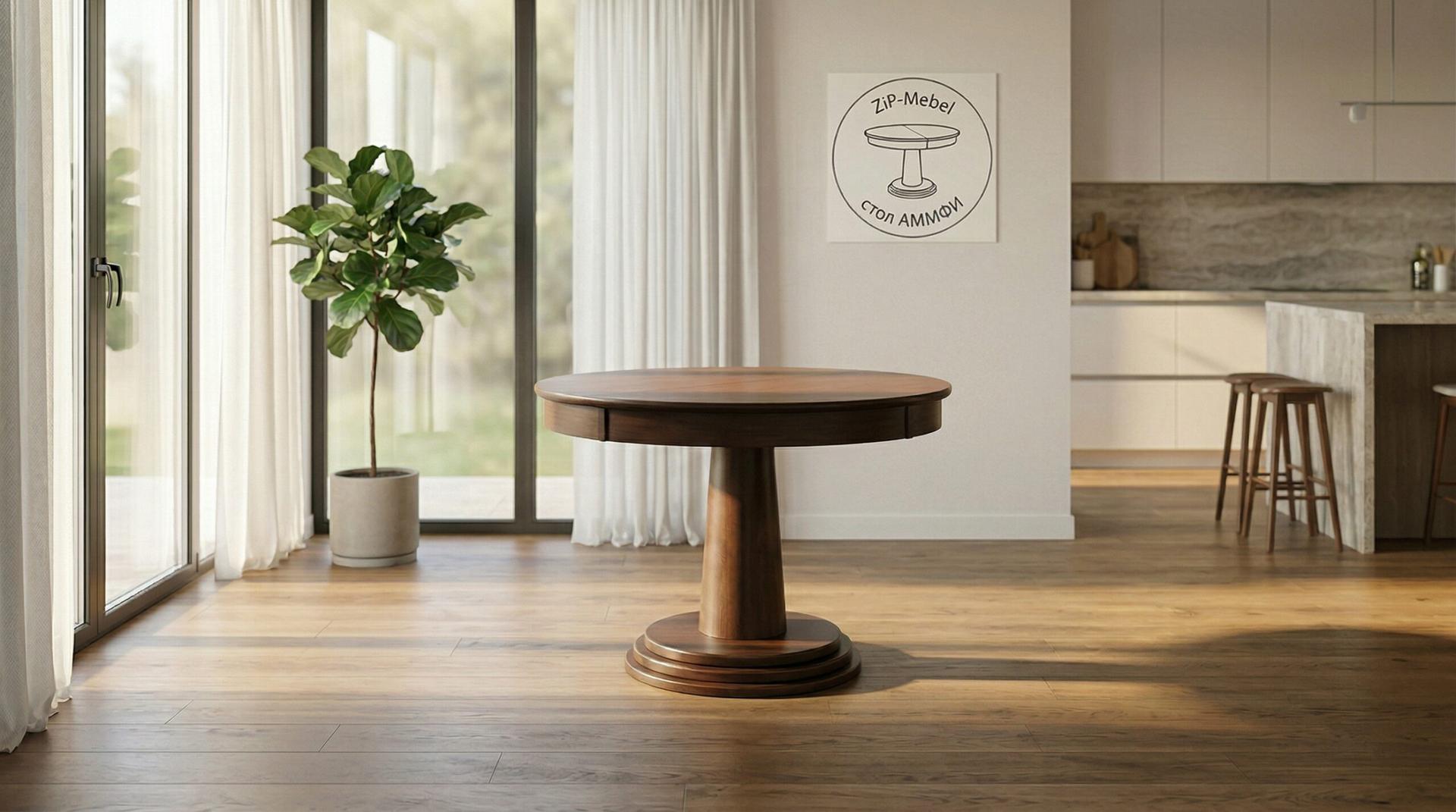 Почему стоит выбирать стол Аммфи: Натуральные материалы — столешница из массива дерева в сочетании с качественным МДФ гарантирует долговечность и благородный внешний вид на долгие годыКлассический дизайн — благородный темный оттенок дерева и изящная тумбовая основа гармонично впишутся в любой интерьер: от классики до современного стиляНадежность — массивное центральное основание обеспечивает устойчивость, а качественная фурнитура — легкость трансформацииАммфи — это не просто стол, это центр притяжения вашей кухни, где собираются самые теплые семейные моменты!