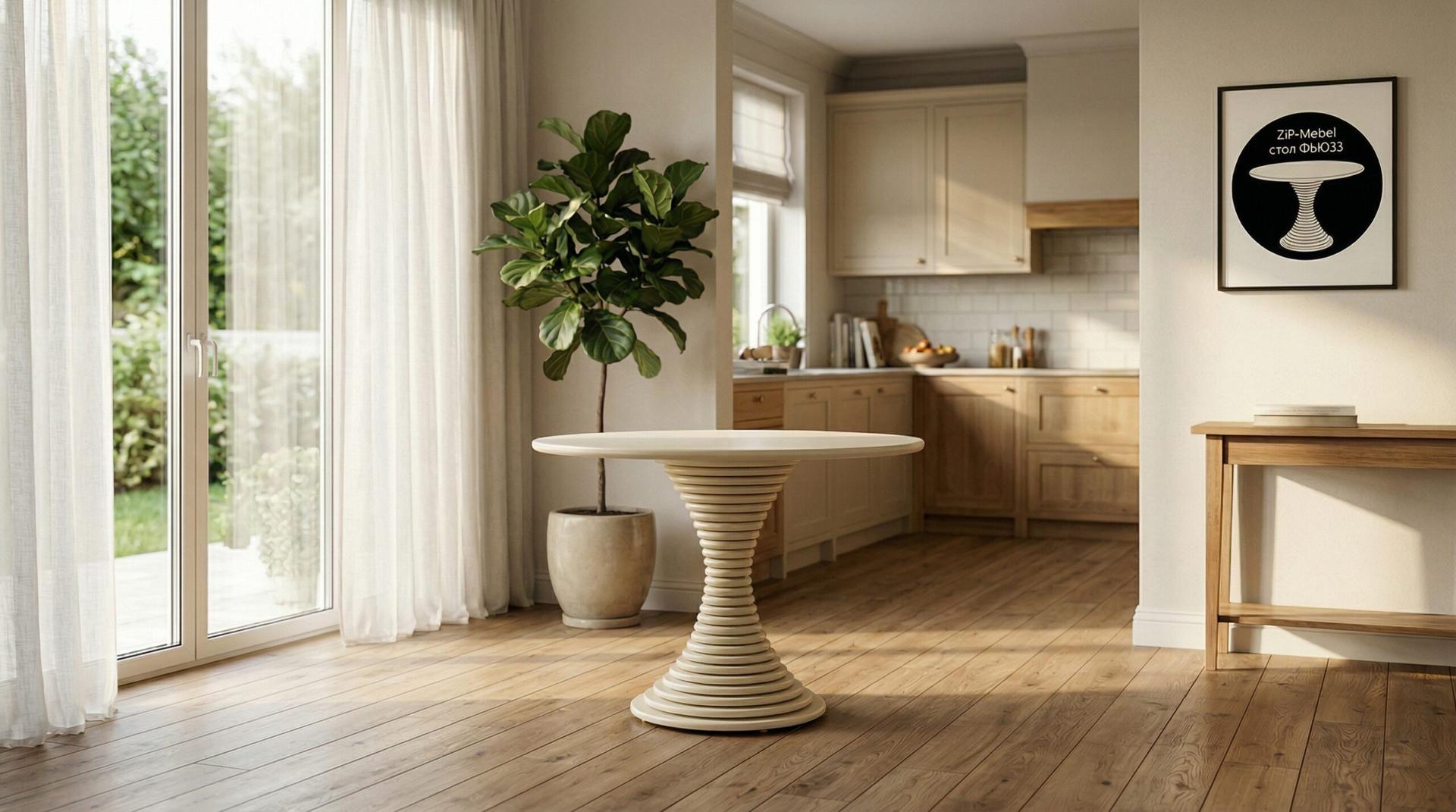 СТОЛ ФЬЮЗЗ — СКУЛЬПТУРНЫЙ МИНИМАЛИЗМ В ВАШЕМ ИНТЕРЬЕРЕСтол «Фьюзз» — это смелое сочетание функциональности и искусства в духе современного дизайна.Уникальный дизайн — выразительное ребристое основание в форме песочных часов превращает стол в настоящий арт-объект, притягивающий взглядыМонохромная элегантность — глубокий цвет и гладкая круглая столешница создают идеальный баланс между строгостью и изысканностьюКомпактность — нераскладная конструкция оптимальна для небольших пространств, при этом круглая форма обеспечивает комфортную посадкуУниверсальность — идеально подойдёт для кухни, гостиной, прихожей или современного офисаФьюзз — когда форма встречается с функцией. Добавьте скульптурную выразительность в ваш интерьер!Стиль, который говорит сам за себя.