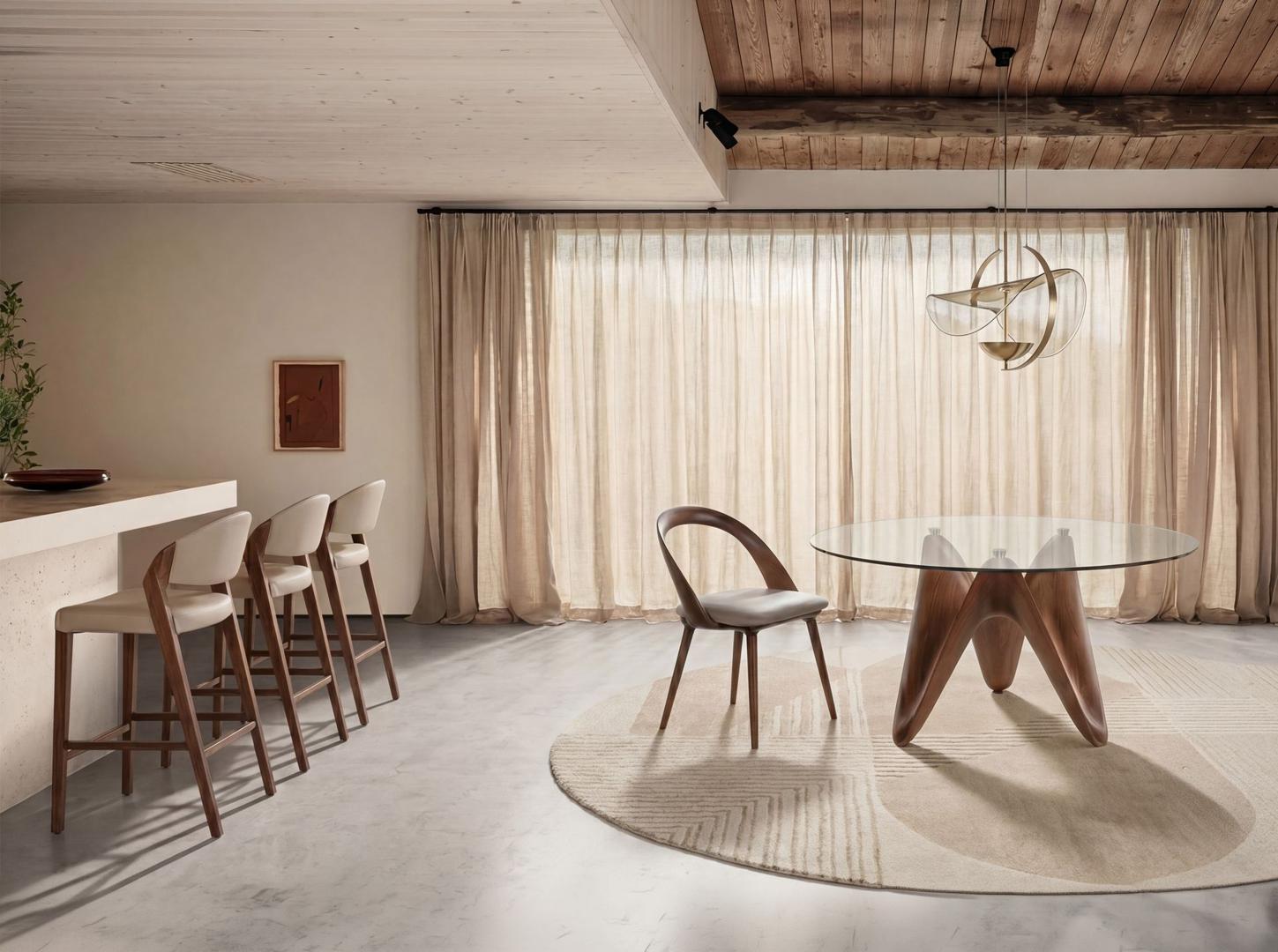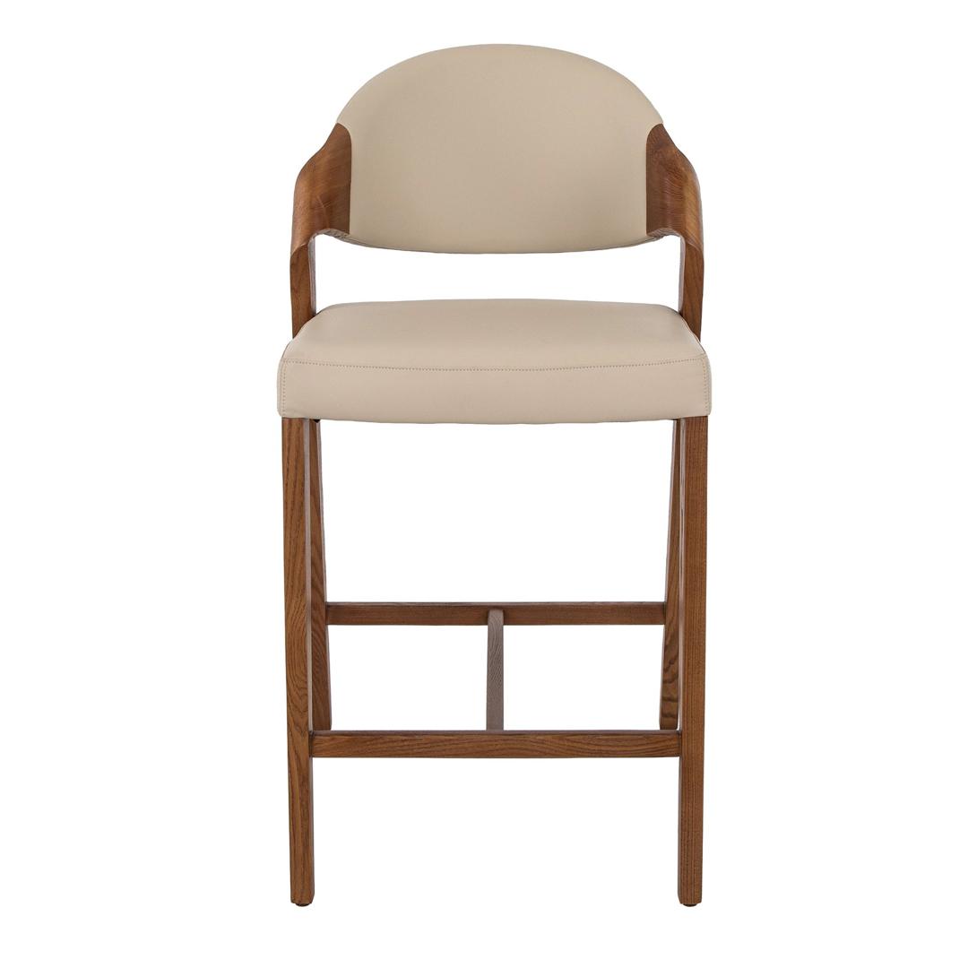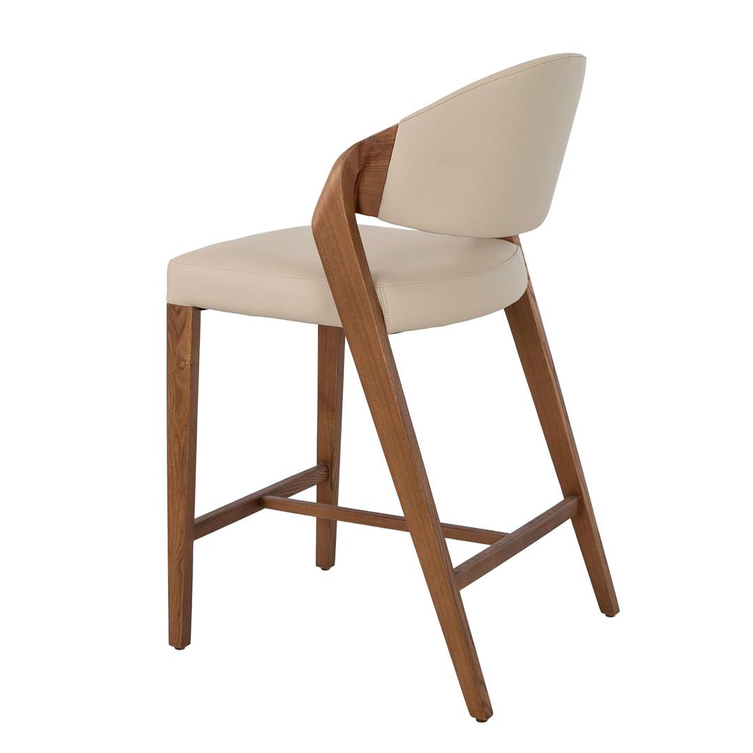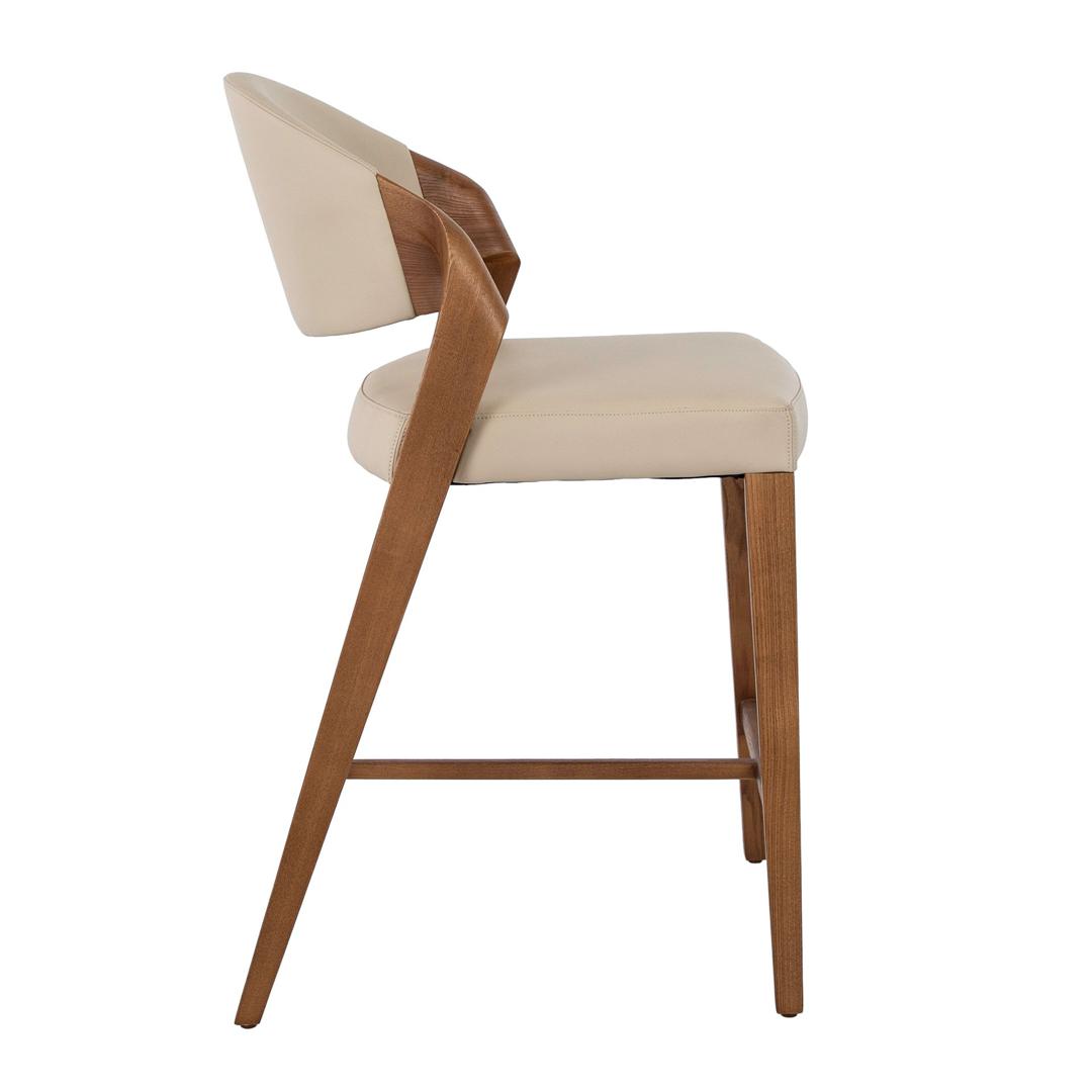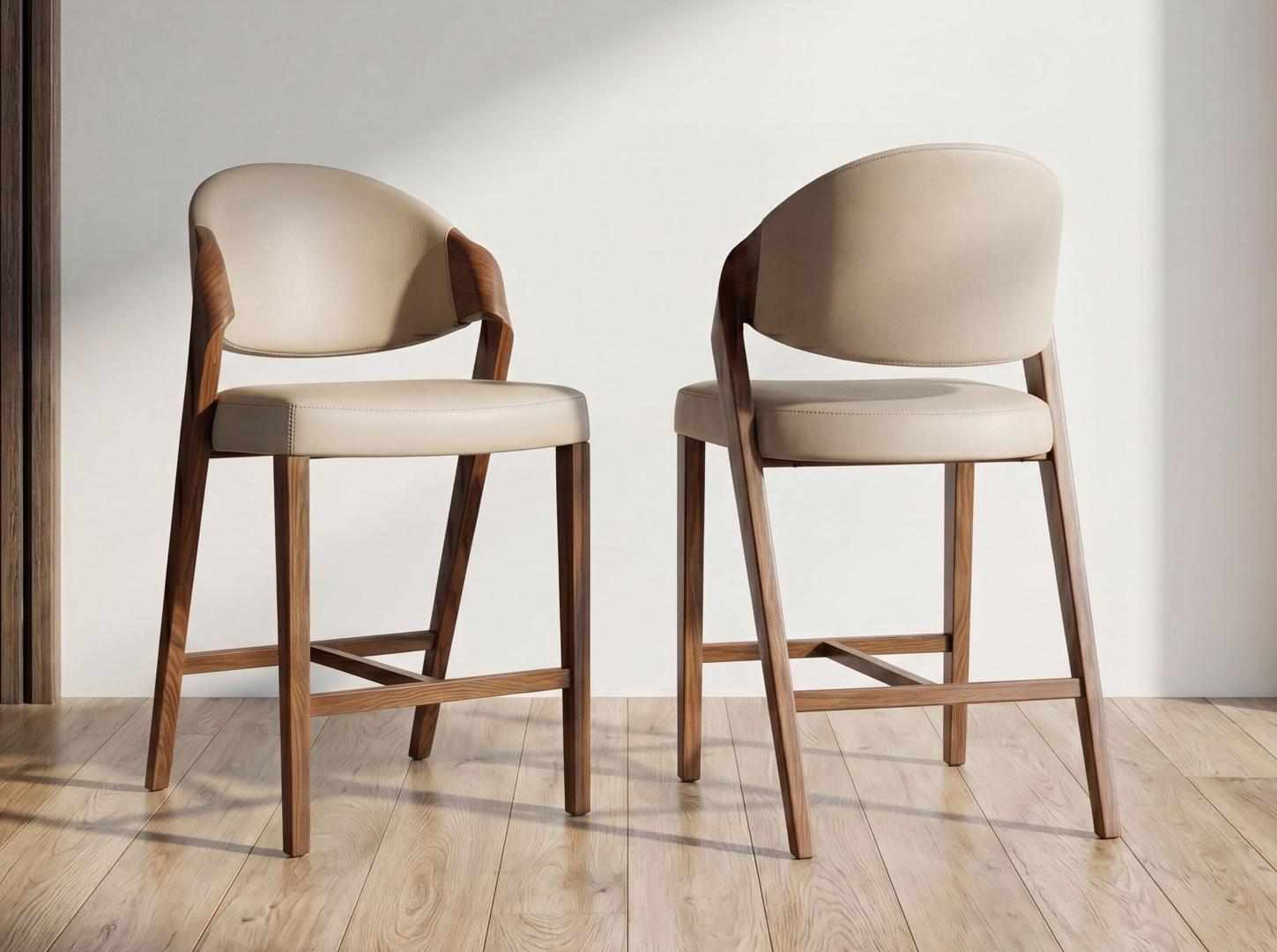 Современный дизайнерский табурет с сиденьем и спинкой, обитыми искусственной кожей цвета норки. Его деревянные ножки цвета ореха, сочетающие в себе авангардный и вневременной стиль, сделают его незаменимым элементом вашей кухни или столовой. Этот табурет от Angel Cerdá сочетает в себе уникальный и индивидуальный стиль бренда с максимальным комфортом и устойчивостью благодаря высокому качеству обивки и оригинальной конструкции ножек.