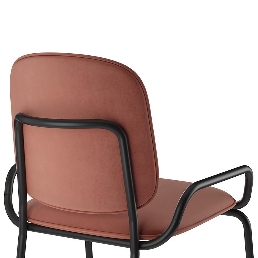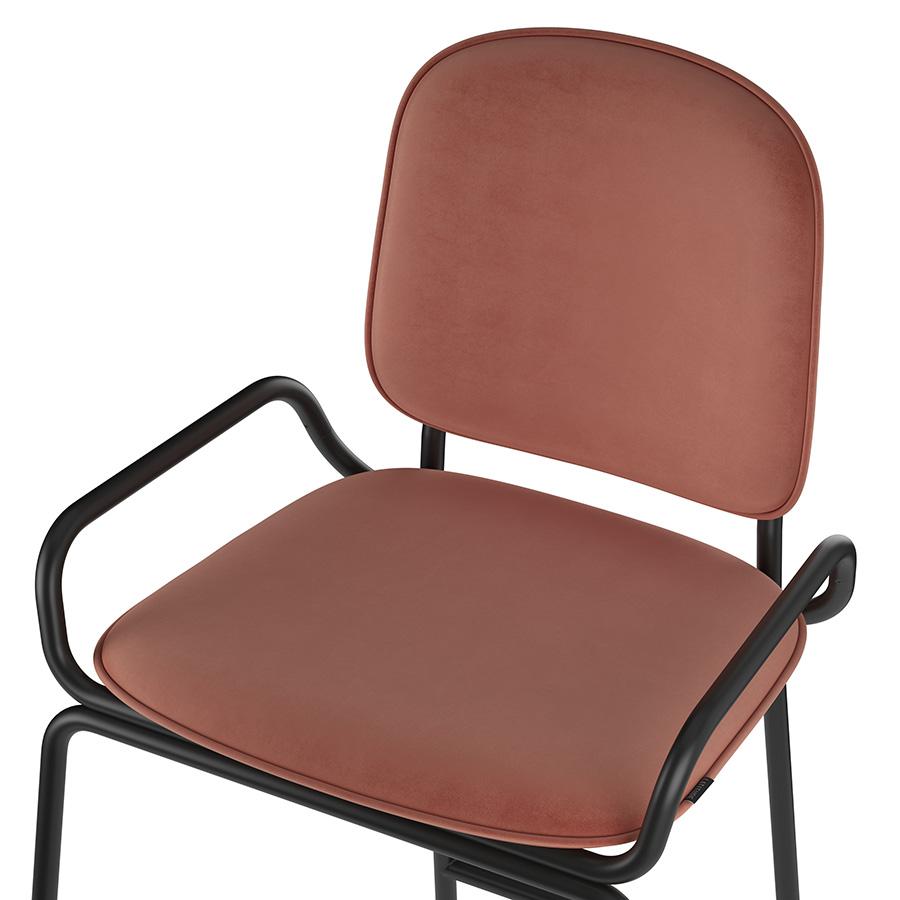 Коллекция Ror – это мебель с индивидуальным характером. Отправной точкой создания линейки стало динамичное движение, воплощенное в логотипе Олимпиады 80, где беговые дорожки образуют силуэт Спасской башни. Стул полубарный Double Frame имеет удобную посадку за счет высокой спинки и широкого основания. Ножки плавно переходят в подлокотники и в нижней части соединяются металлической рамой, которая служит подставкой для ног. Такое дизайнерское решение создает дополнительный комфорт во время сидения. Стальной каркас с порошковым покрытием делает конструкцию прочной и надежной, а мягкий велюр с бархатистой текстурой обеспечивает приятные тактильные ощущения. Используемый в качестве наполнителя пенополиуретан отличается оптимальной плотностью и жесткостью. Все материалы отвечают высоким стандартам практичности, долговечности и экологической безопасности. Стул украсит интерьер кафе и ресторана, а также прекрасно подойдет для оформления обеденной зоны и кухонного острова в доме или квартире. Материалы: сталь, фанера, 100% пенополиуретан, 100% полиэстер. Размеры: 52,7х53,9х98,5 см. Максимальная нагрузка: 136 кг. Цвет: черный/темно-красный. Загрязнения удалять с поверхностей мыльным раствором воды при помощи мягкой губки или салфетки.
