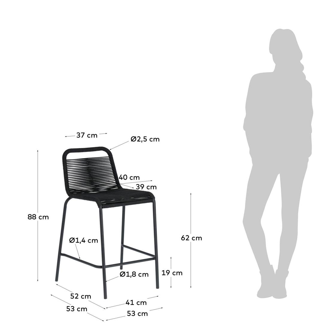 Полубарный стул Glenville от фабрики La Forma (ex Julia Grup) – для удобного времяпровождения на террасе в солнечные дни. Полубарный стул Glenville безусловно обеспечит популярность вашей коктейльной зоне на открытом воздухе. Сиденье сплетено вручную из прочной веревки, устойчивой к ультрафиолету и влаге. Оно имеет безупречный вид и располагает к отдыху. Надежная металлическая основа добавит уверенности вам и будет устойчива на любой поверхности. Glenville поможет наслаждаться моментом. Стул состоит из металлического каркаса и плетеного сиденья из прочного полимерного шнура (95% полипропилен, 5% полиэстер). Сверху есть специальное покрытие, которое защищает нити от вредного воздействия ультрафиолета. Цвет плетения на ваш выбор — бежевый или черный. Каркас сделан из оцинкованной стали. Поверхность покрыта черной порошковой краской, которая защищает металл от негативного воздействия влаги. Ножки высотой 62 см имеют трубчатую структуру, оснащены пластиковыми наконечниками, которые обеспечивают устойчивость на неровной поверхности. Максимальная весовая нагрузка – 130 кг. Размеры: ширина – 53 см, высота – 88 см, глубина – 53 см, глубина сиденья – 40 см. Вес – 4 кг. Сборка не требуется. В коллекции Glenville также представлены стулья с аналогичным дизайном.