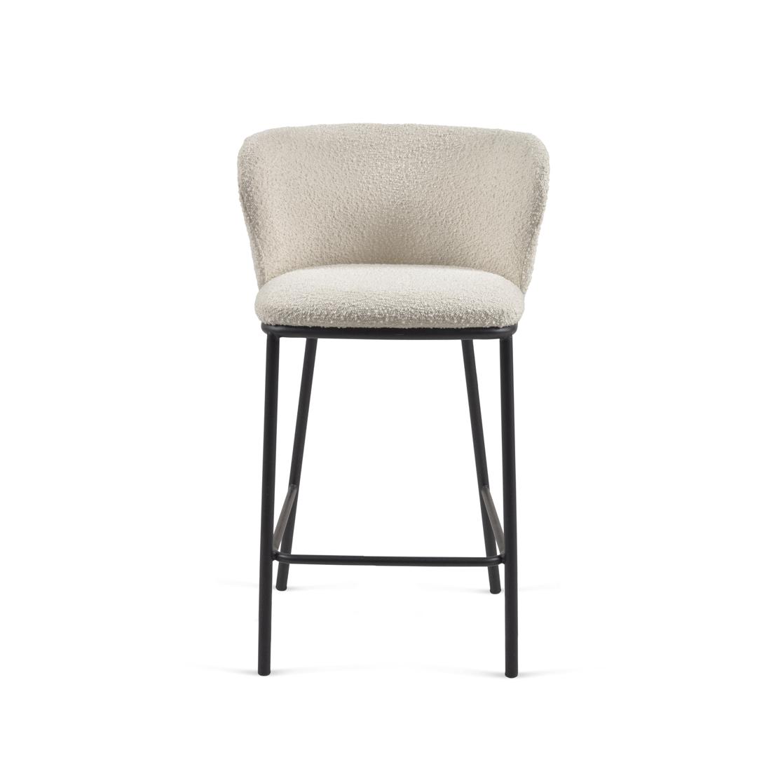 Стул полубарный La Forma (ех Julia Grup) Полубарный стул Ciselia из белой ткани букле и черного металла 65 см арт. 160258