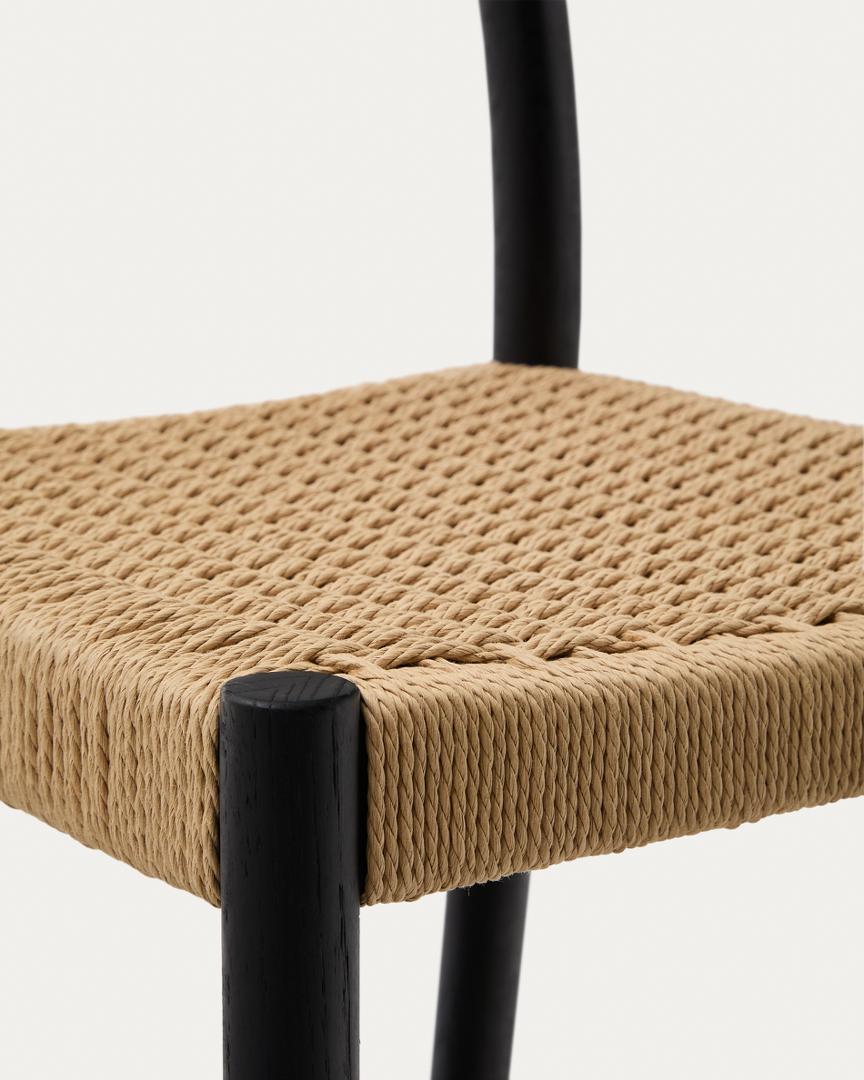 Стул полубарный La Forma (ех Julia Grup) Analy Полубарный стул из массива дуба с черной отделкой и сиденьем из веревки 65 см арт. 192039