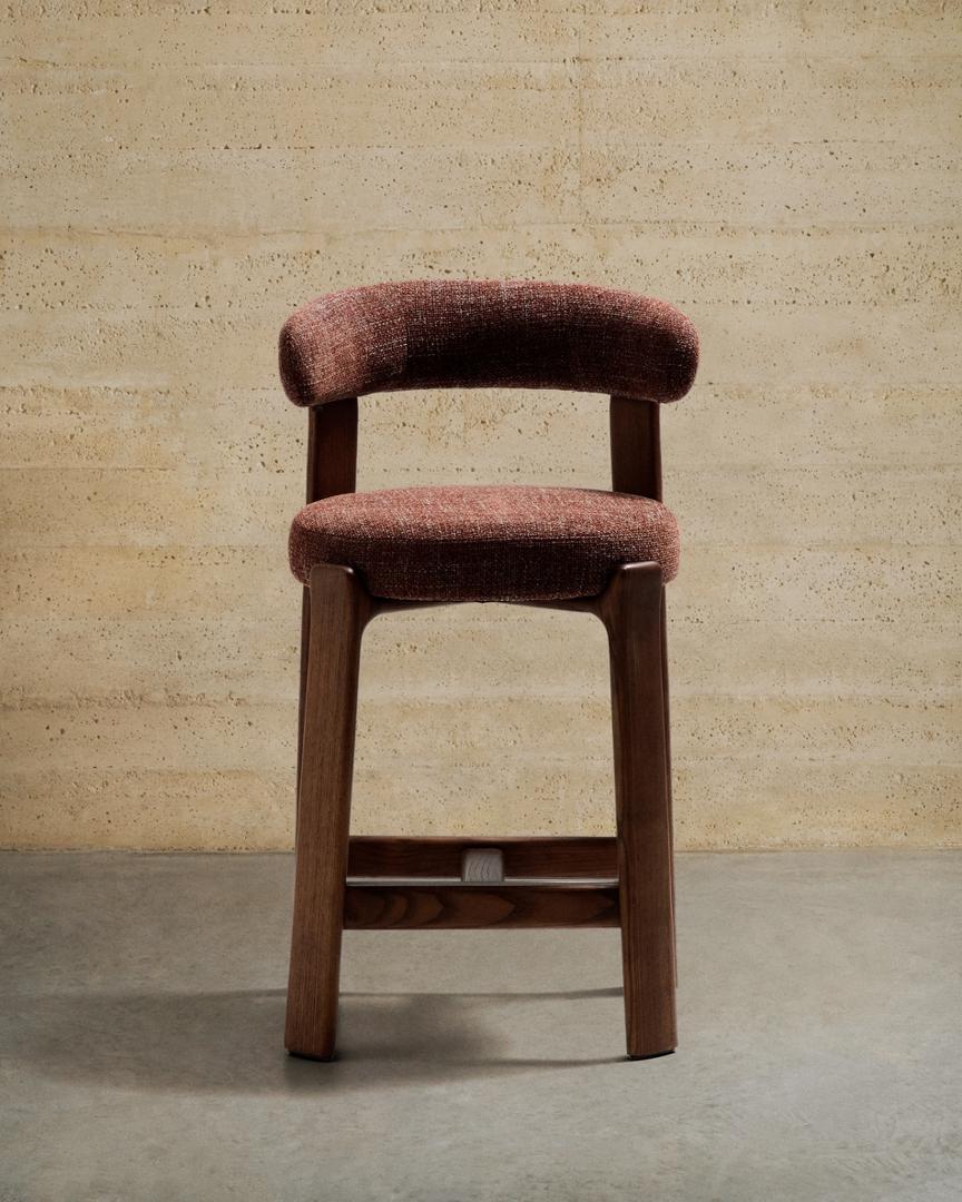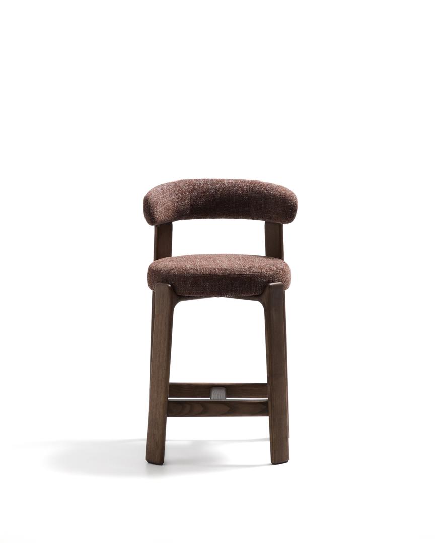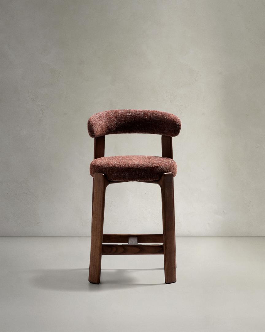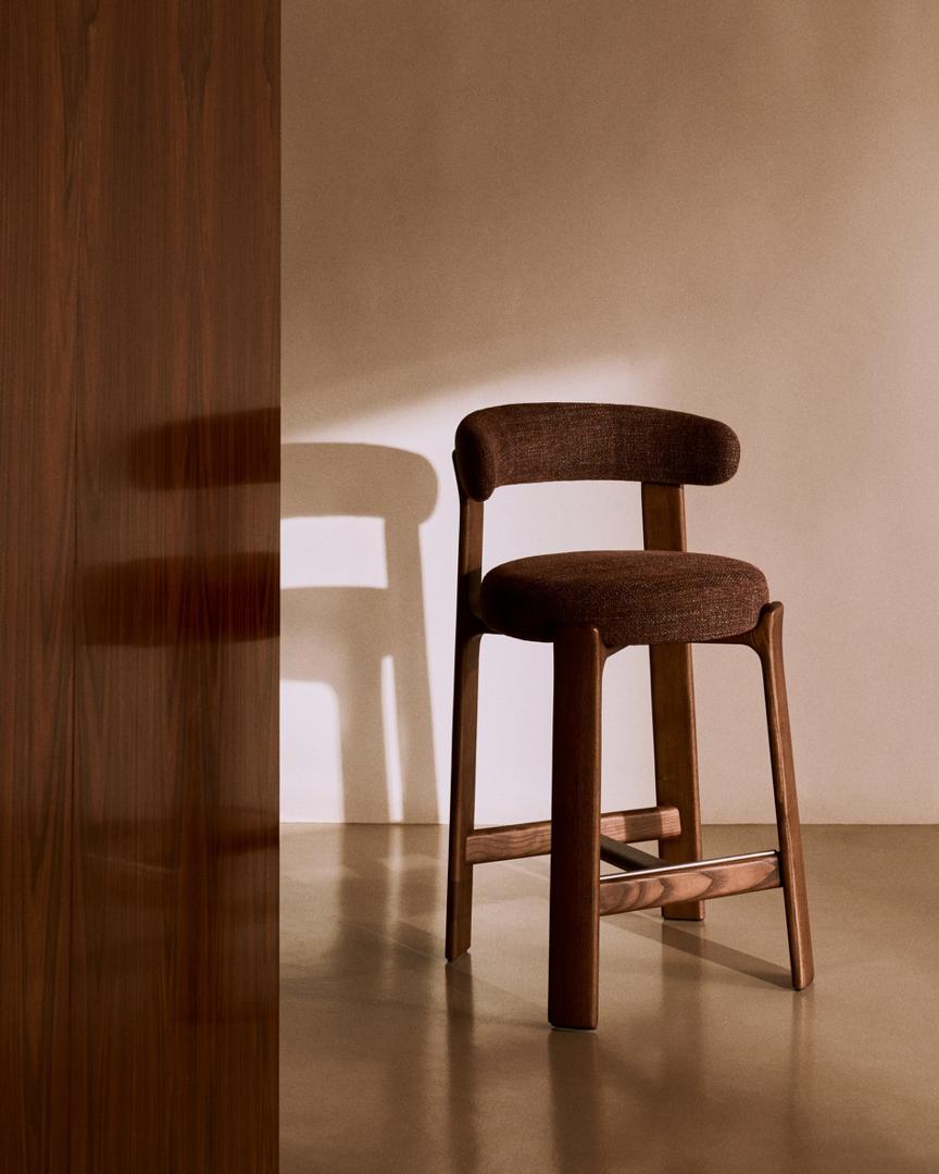 Стул полубарный La Forma (ех Julia Grup) Полубарный стул Granite из коричневого шенилла и ясеня с отделкой орех 65 см арт. 301955