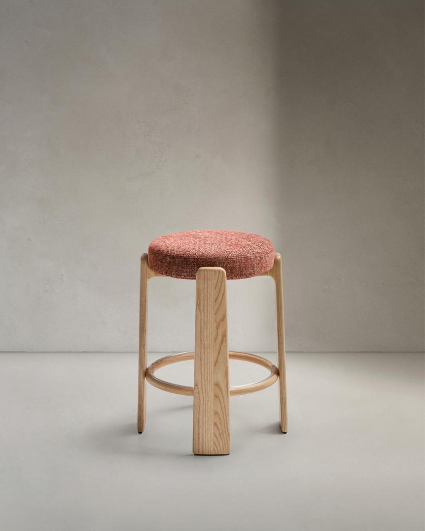 Стул полубарный La Forma (ех Julia Grup) Granite Полубарный табурет из терракотового шенилла и массива ясеня в натуральной отделке 65 см арт. 420261