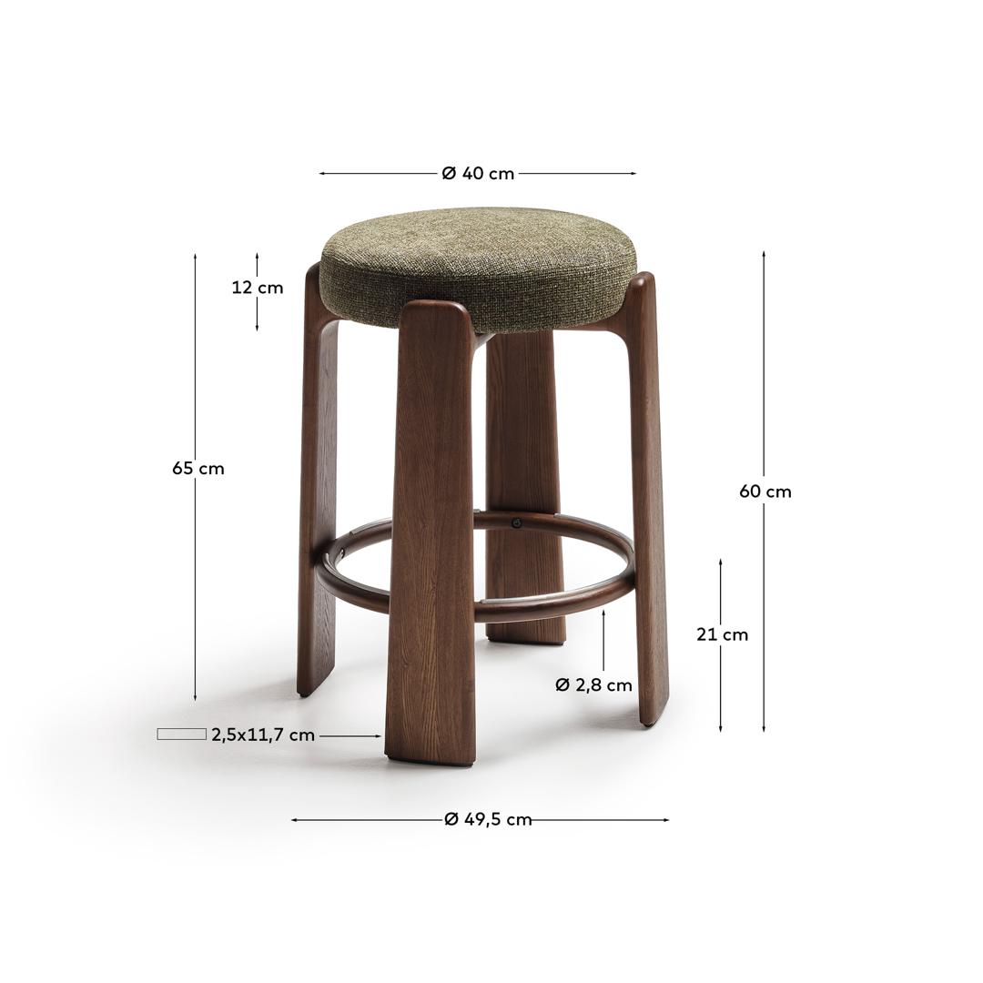 Стул полубарный La Forma (ех Julia Grup) Granite Полубарный табурет из зеленого шенилла и массива ясеня в отделке орех 65 см арт. 420257