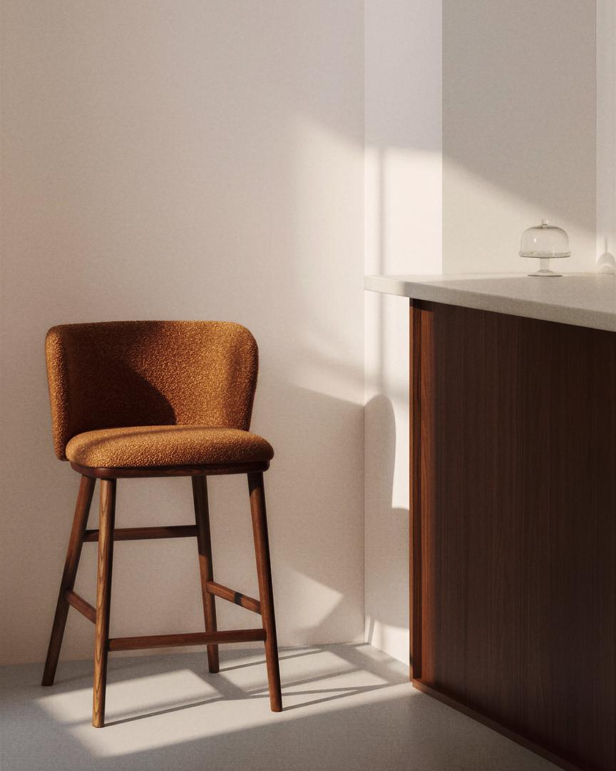 Стул полубарный La Forma (ех Julia Grup) Полубарный стул Ciselia из терракотового шенилла с ножками из ясеня в отделке орех арт. 463519