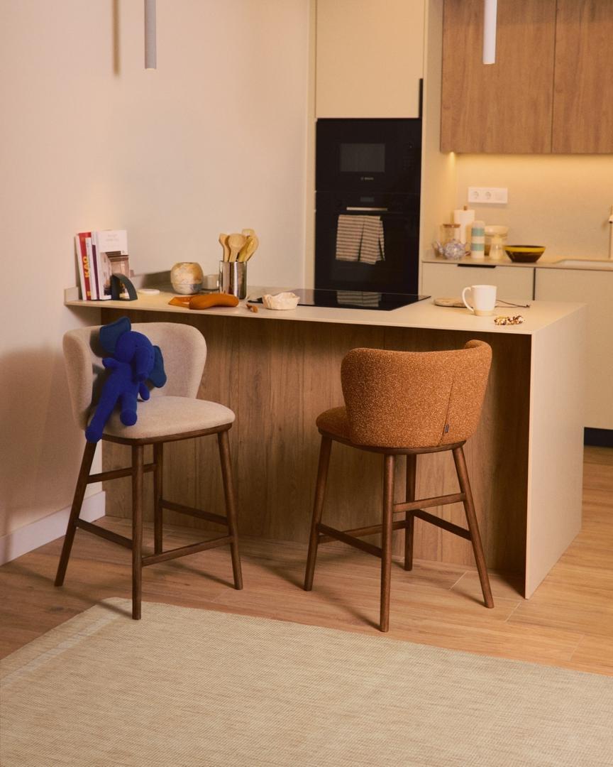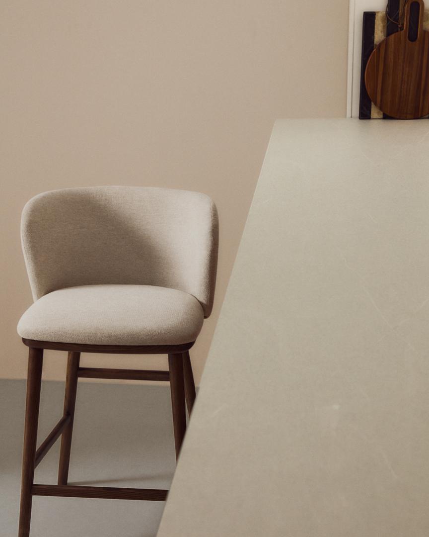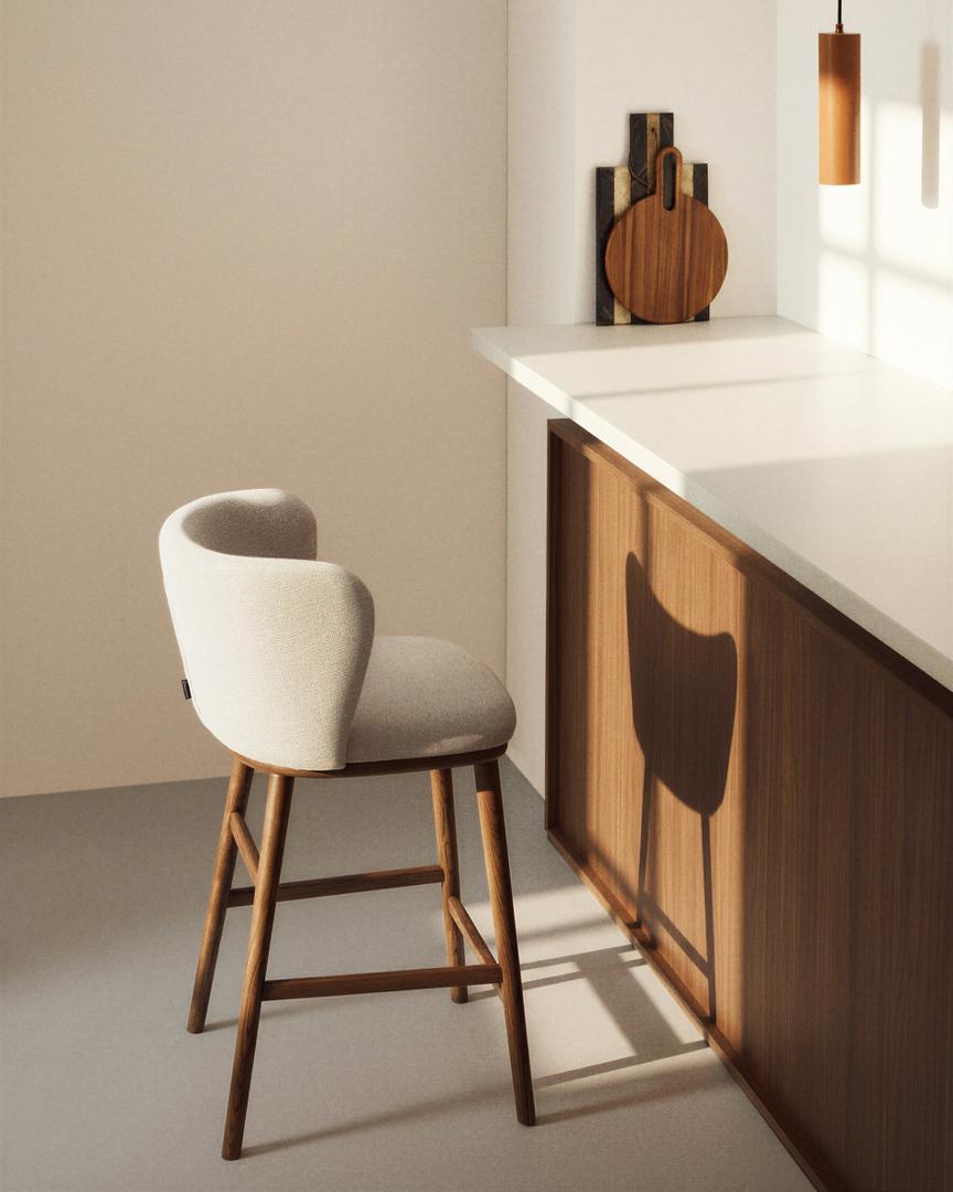 Стул полубарный La Forma (ех Julia Grup) Полубарный стул Ciselia из бежевого шенилла с ножками из ясеня в отделке орех арт. 463521