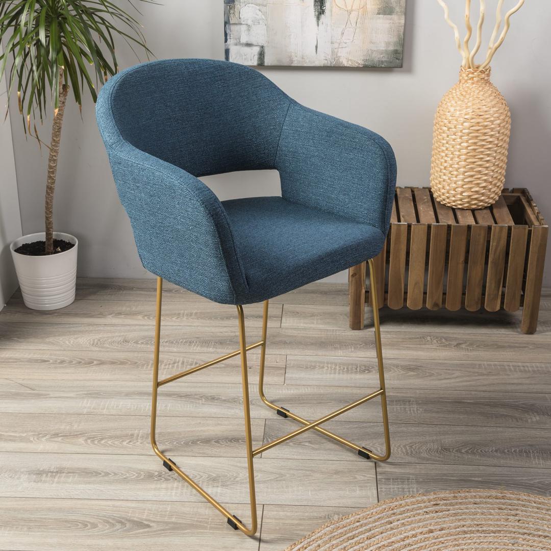 Стул полубарный R-Home Кресло полубар Oscar БлюАрт/ЛинкЗолот арт. 4101188h_БлюАртЗолот_ПБ