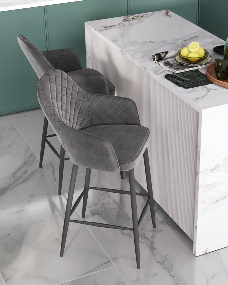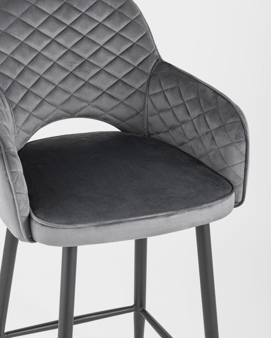 Стул полубарный Венера диамант велюр серый ножки металл черный