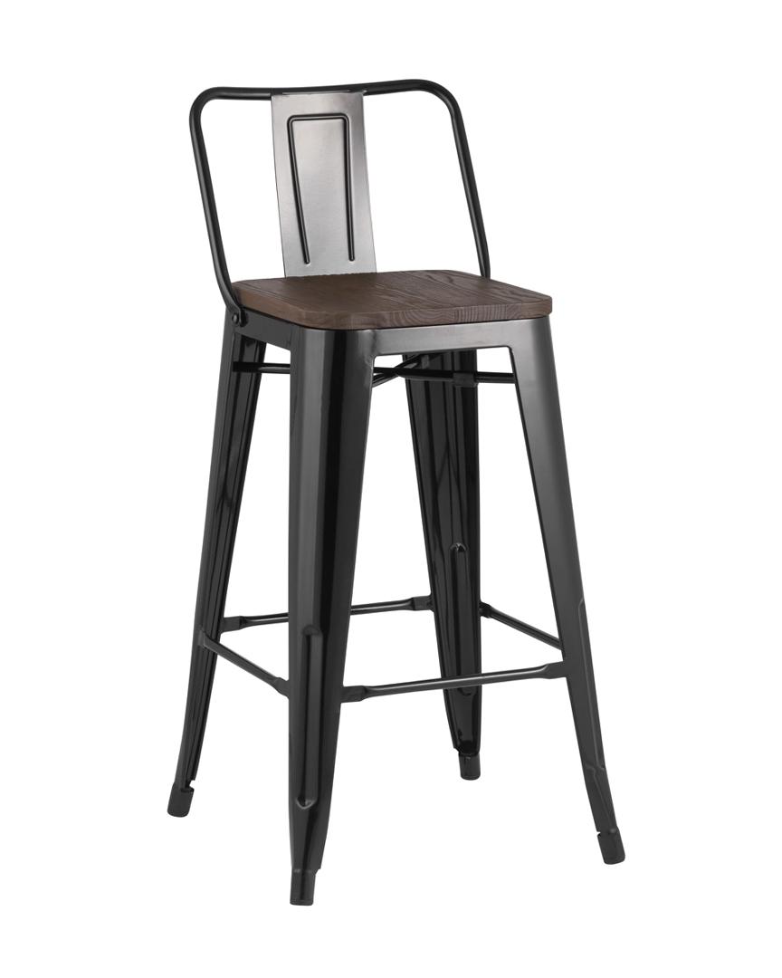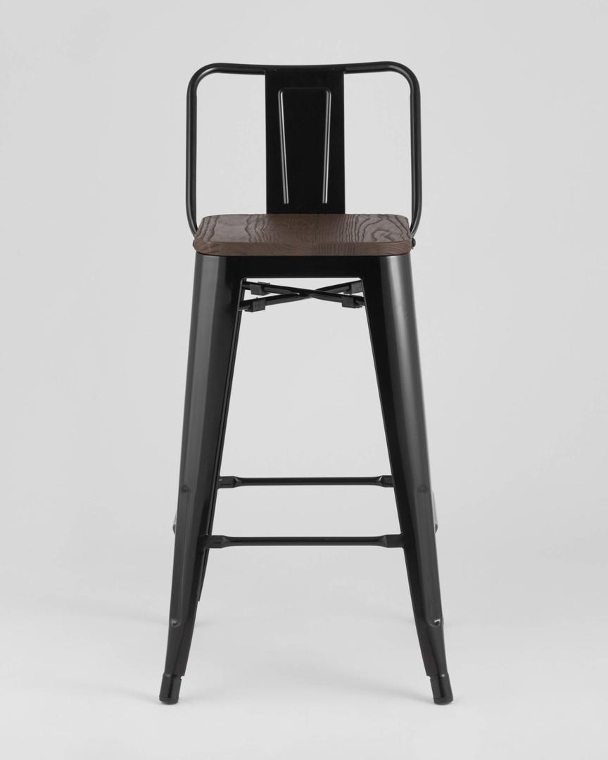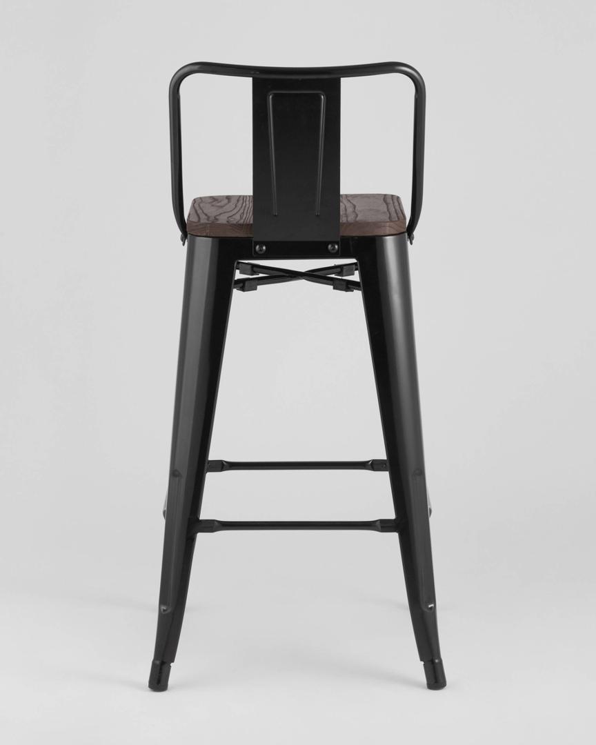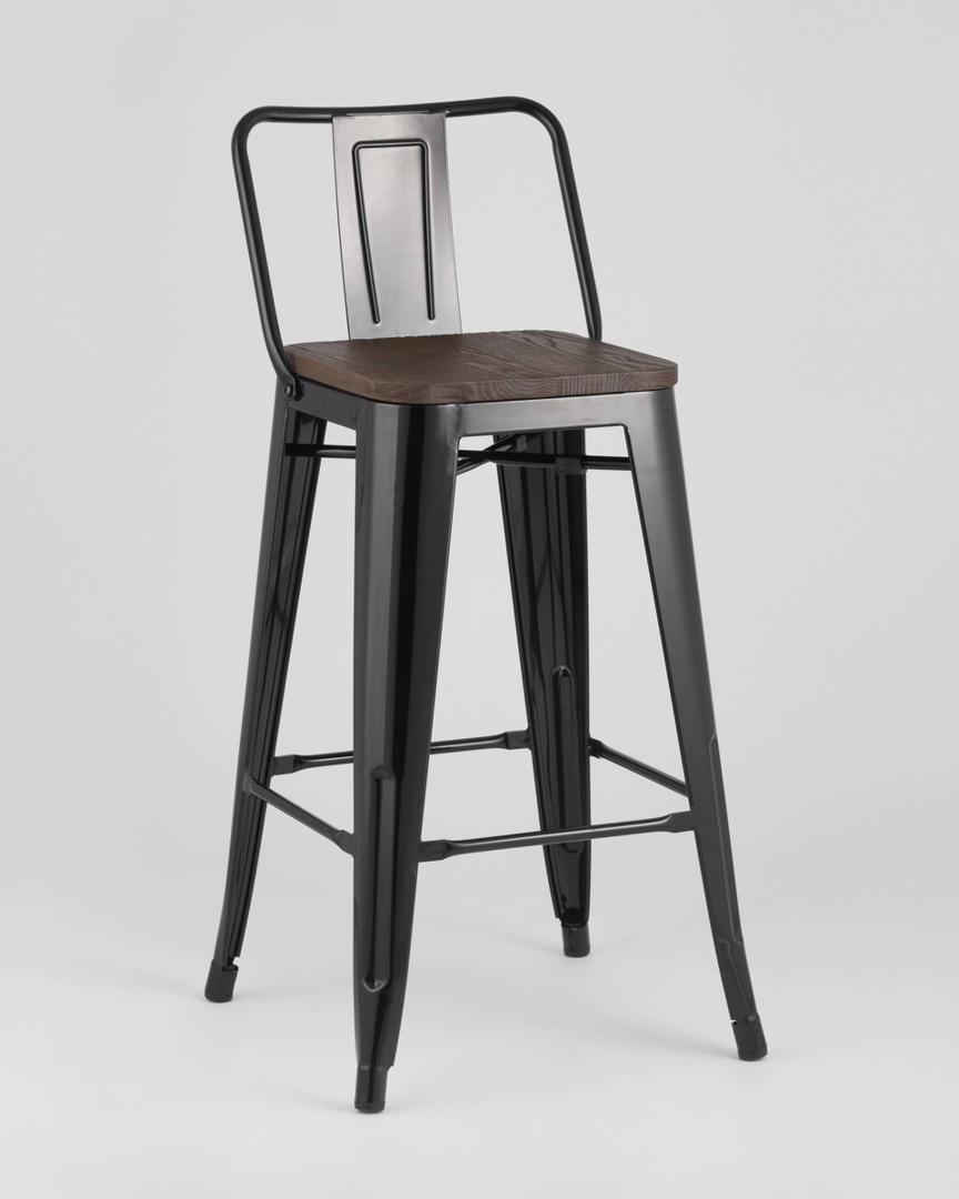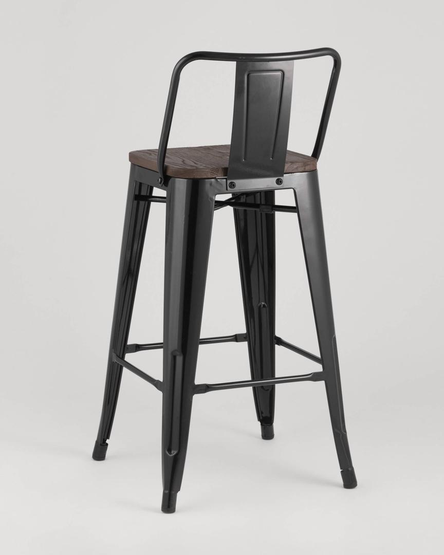 Стул Stool Group полубарный TOLIX WOOD со спинкой черный глянцевый, широкая низкая спинка, оцинкованный металл с порошковым напылением, сиденье из натурального дерева