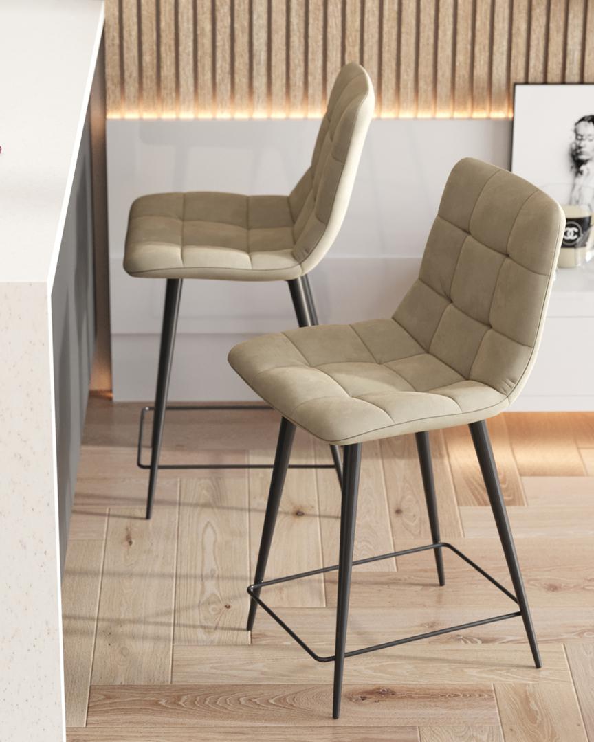Стул полубарный Джанго велюр бежевый ножки металл высота сиденья 60 см