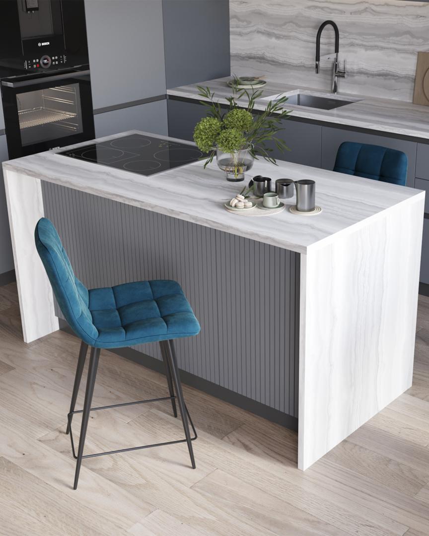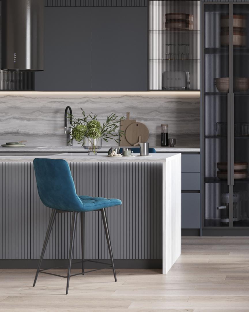 Стул полубарный Джанго велюр синий ножки металл высота сиденья 60 см