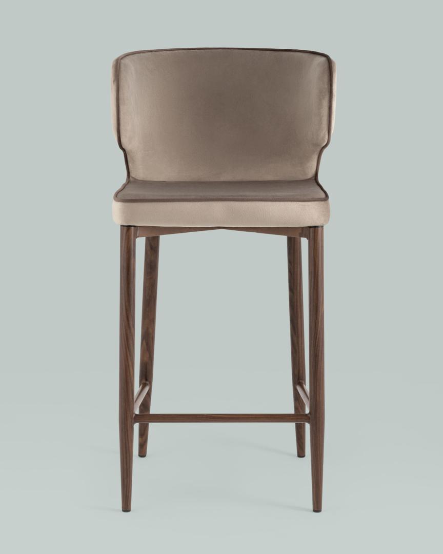 Стул полубарный Матео с кантом велюр шампань ножки металл под дерево