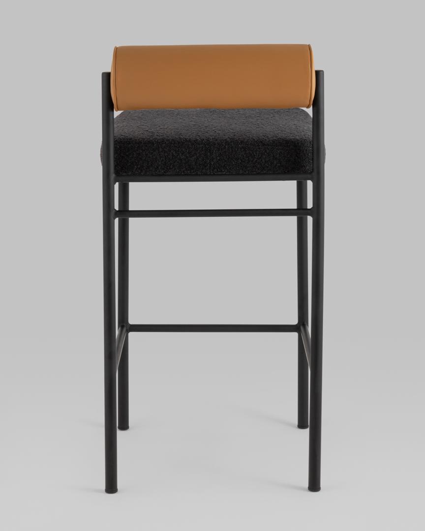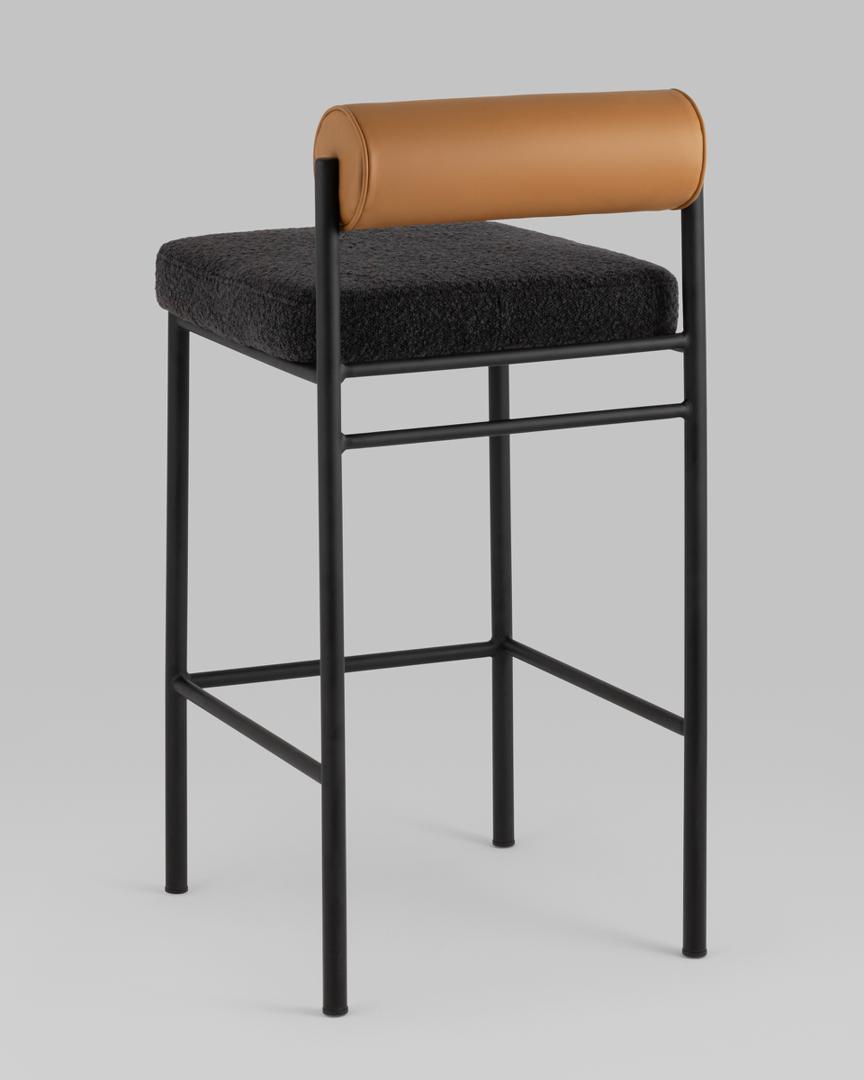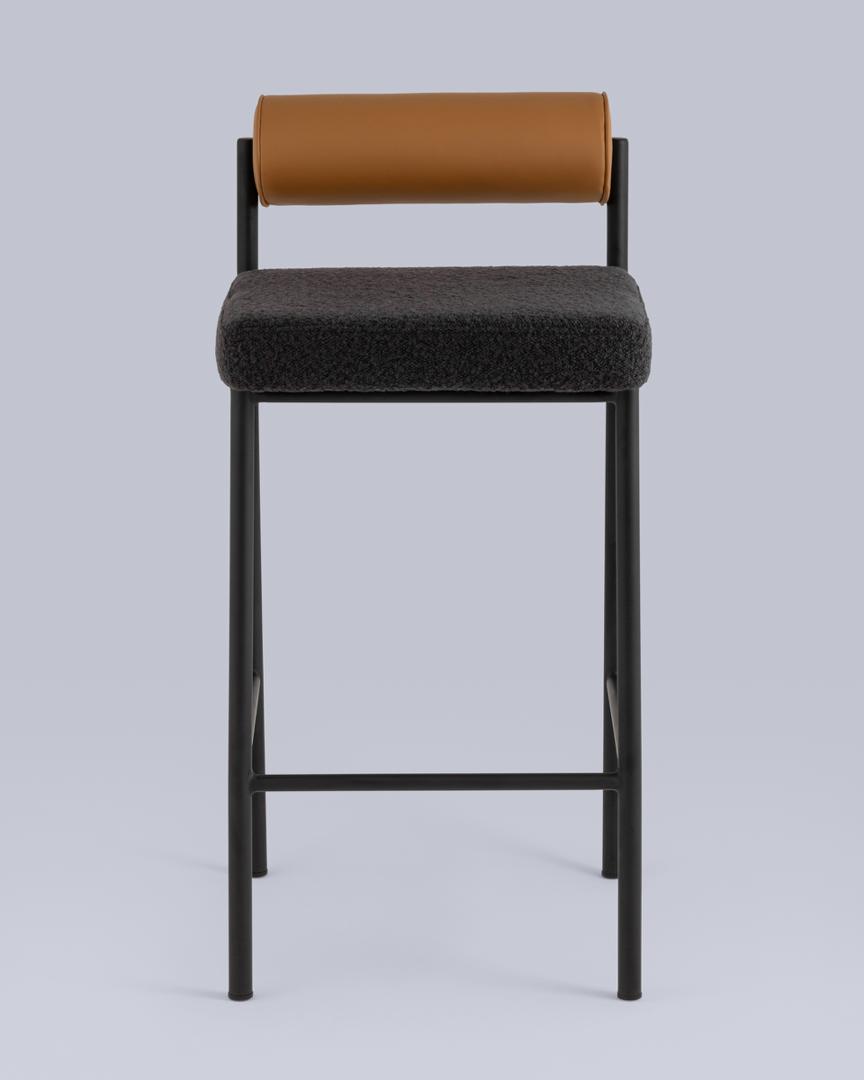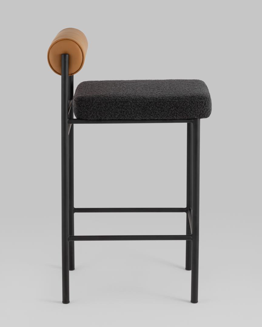 Стул полубарный Балла темно-серый сиденье букле, со спинкой в форме валика экокожа, ножки черные металл
