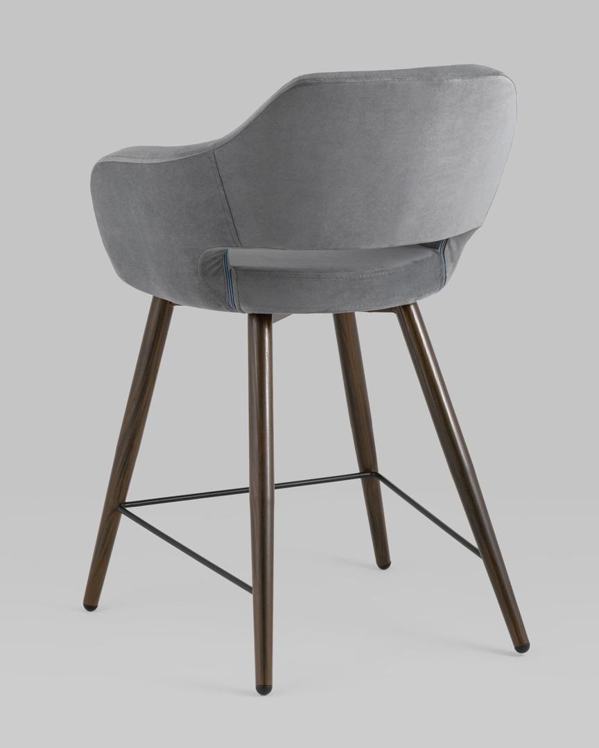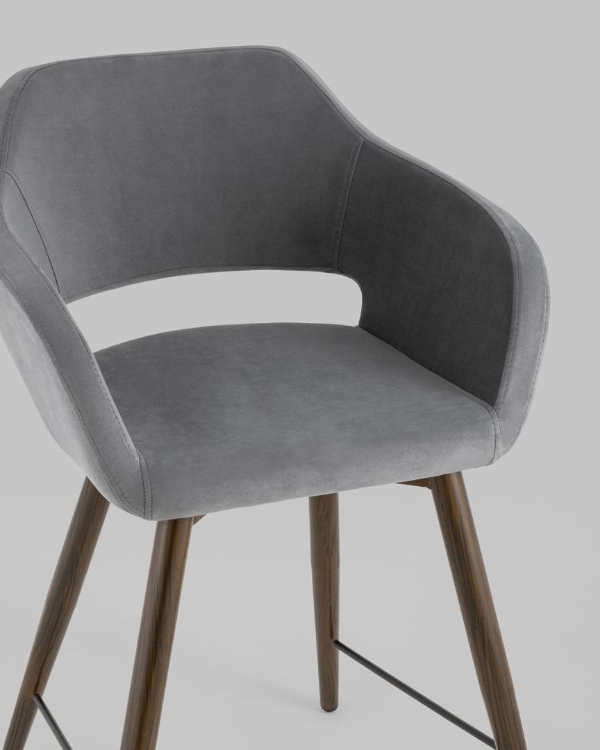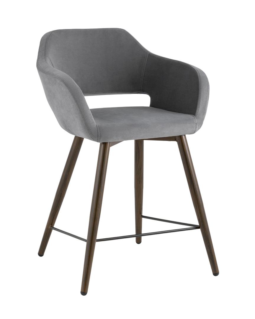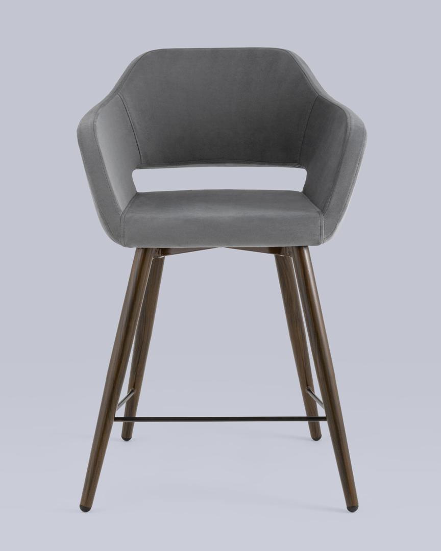 Стул полубарный Саймон велюр тёмно-серый ножки металл темное дерево