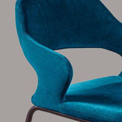 strong*Оттенок может выглядеть по-разному в зависимости от направления ворса./strong Коллекция «Вудди» - это легкий, смелый дизайн, ультрамодные линии, популярные оттенки цвета. Эти стулья притягивают взгляд, «оживляют» интерьер, дарят положительные эмоции владельцам и гостям дома. Широкое сиденье, эргономичный наклон спинки с довольно крупным просветом образуют максимально удобную форму для посадки. Оригинальные подлокотники, слегка вытянутые вперед, корректно поддерживаю спину и локти, но не мешают придвинуть стул довольно близко к столу. Ножки обеденных стульев обтянуты основной бархатной обивкой. Этот нюанс придает образу особую мягкость и целостность. Полубарные стулья с идентичной формой сиденья как-бы парят в воздухе, благодаря тонким, но очень прочным ножкам. Очертания опорной перекладины с прямыми углами подчеркивают футуристичность верхней части, мягкой во всех отношениях. Дизайнерская коллекция стульев «Вудди» без труда впишется в современный интерьер кухни, столовой, гостиной. Повышенная износостойкость обивки, металлические ножки, позволяют использовать мебель в коммерческих помещениях сегмента HoReCa.