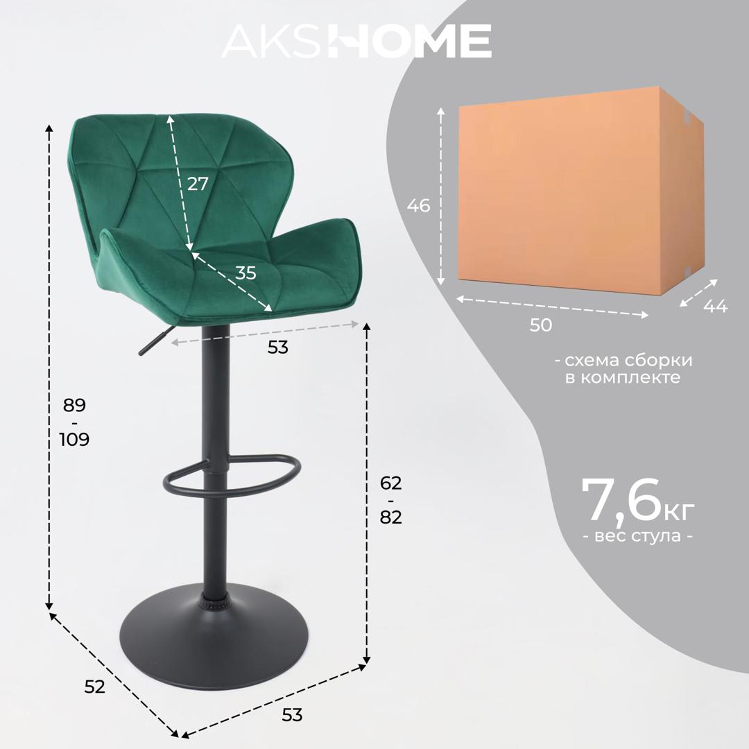 Стул барный AksHome Стул барный Berlin, зеленый, велюр арт. ZN-126503