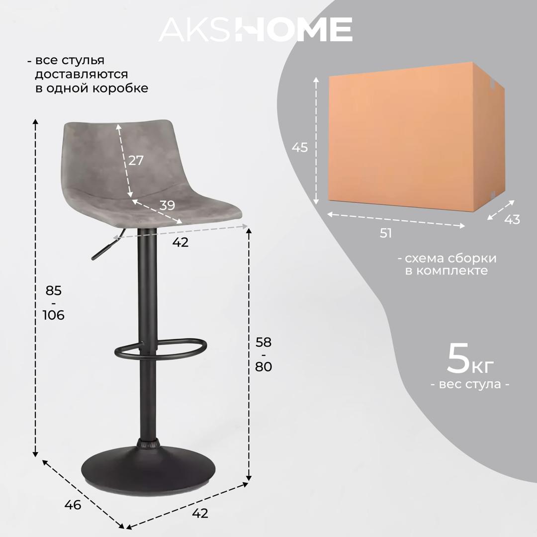 Стул барный AksHome Стул барный Madrid, серый, ткань арт. ZN-126550