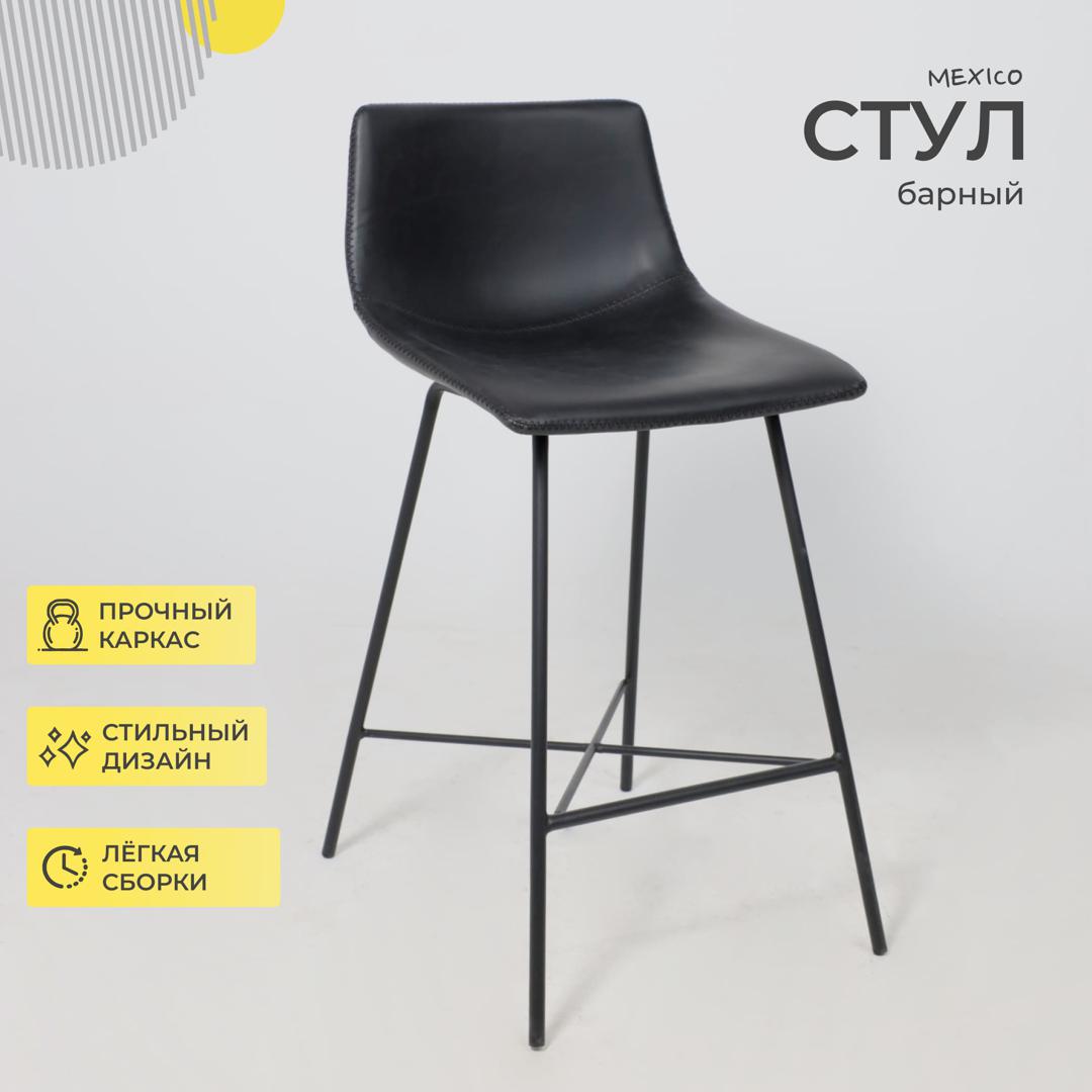 Наименование: Стул барный Mexico, черный + черная нить, экокожа