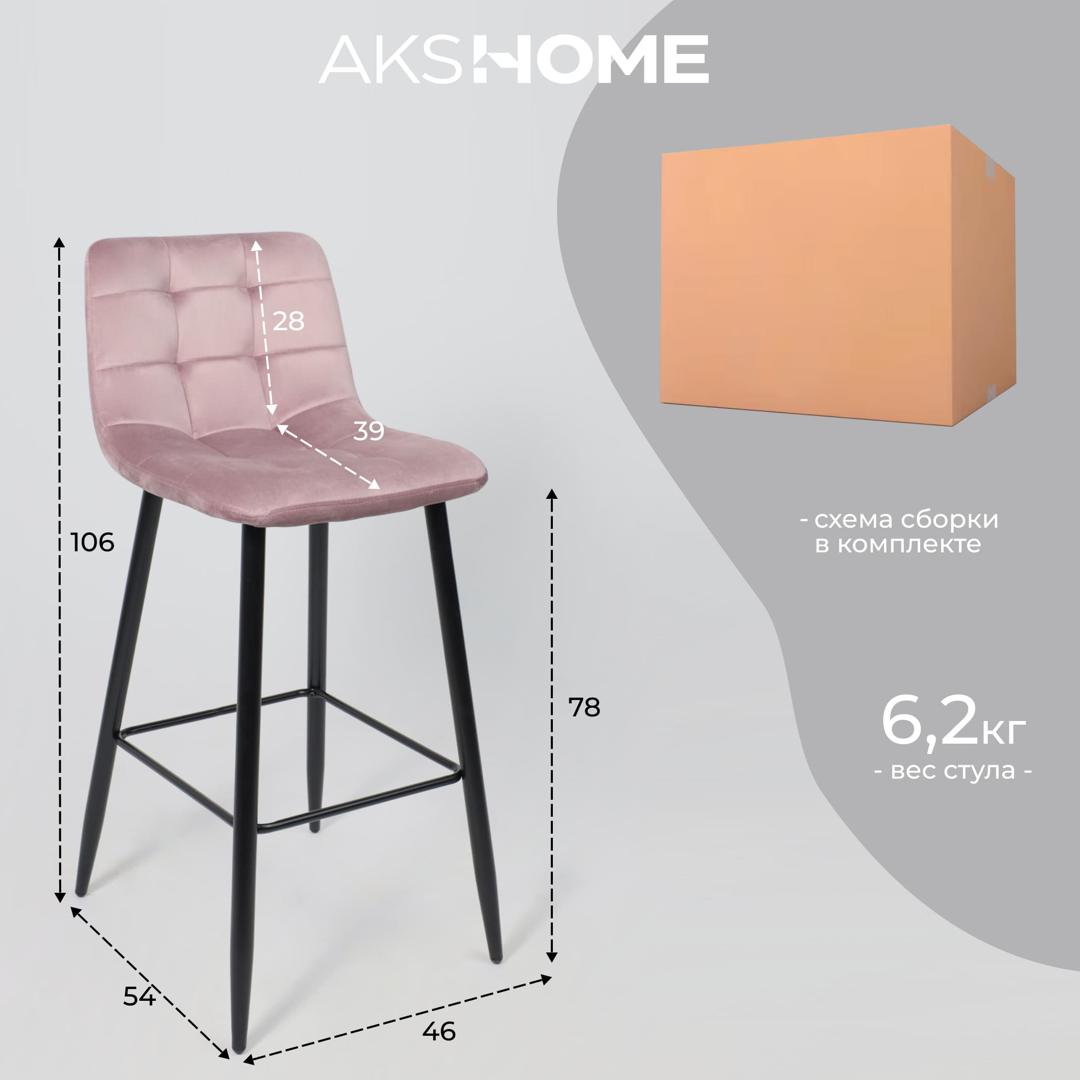 Стул барный AksHome Стул барный Stella, пыльная роза, велюр арт. ZN-126969