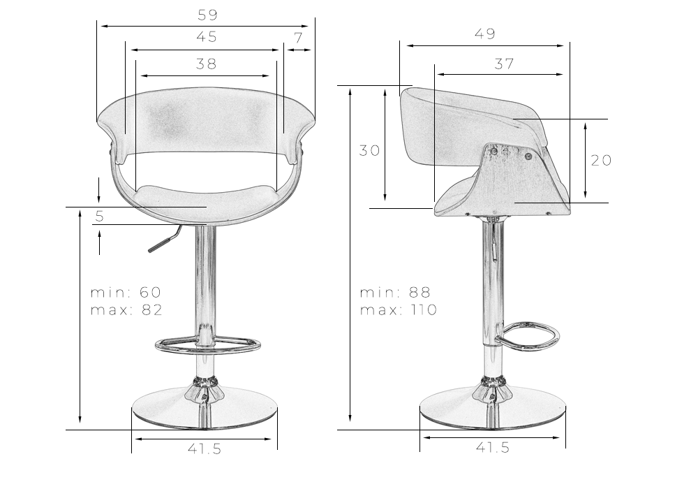 Максимальная высота сиденья, см - 82, 60
