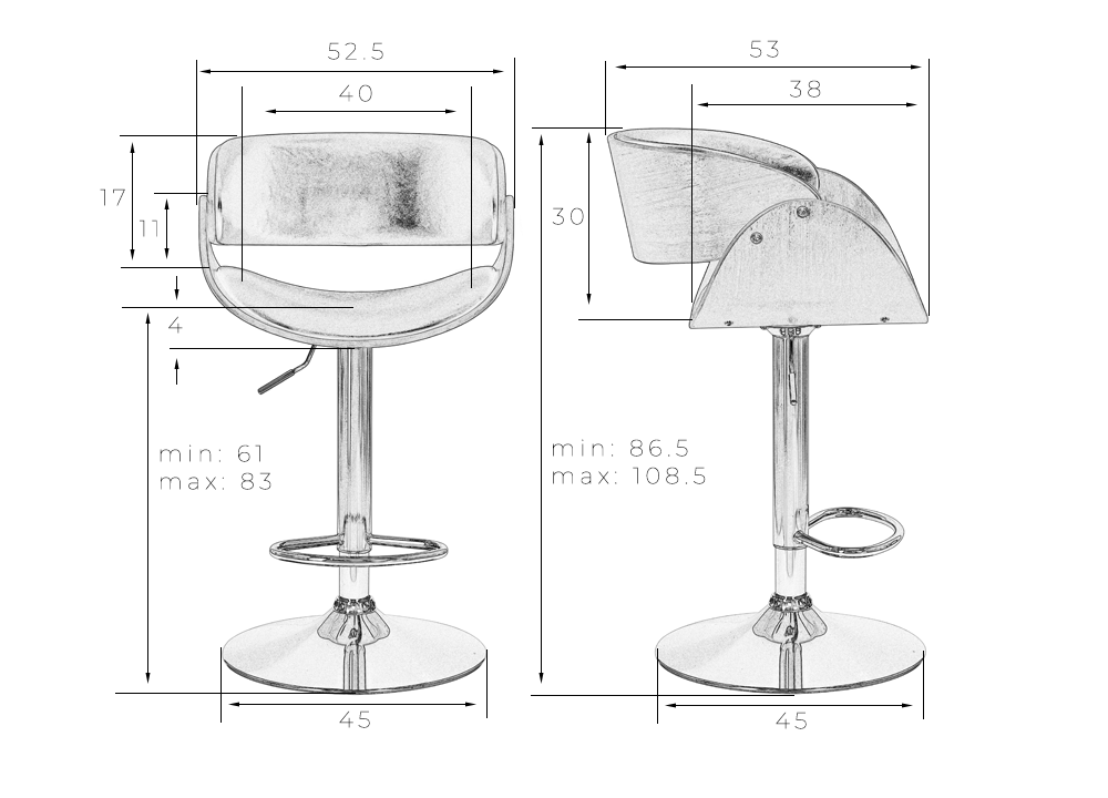 Максимальная высота сиденья, см - 83, 61