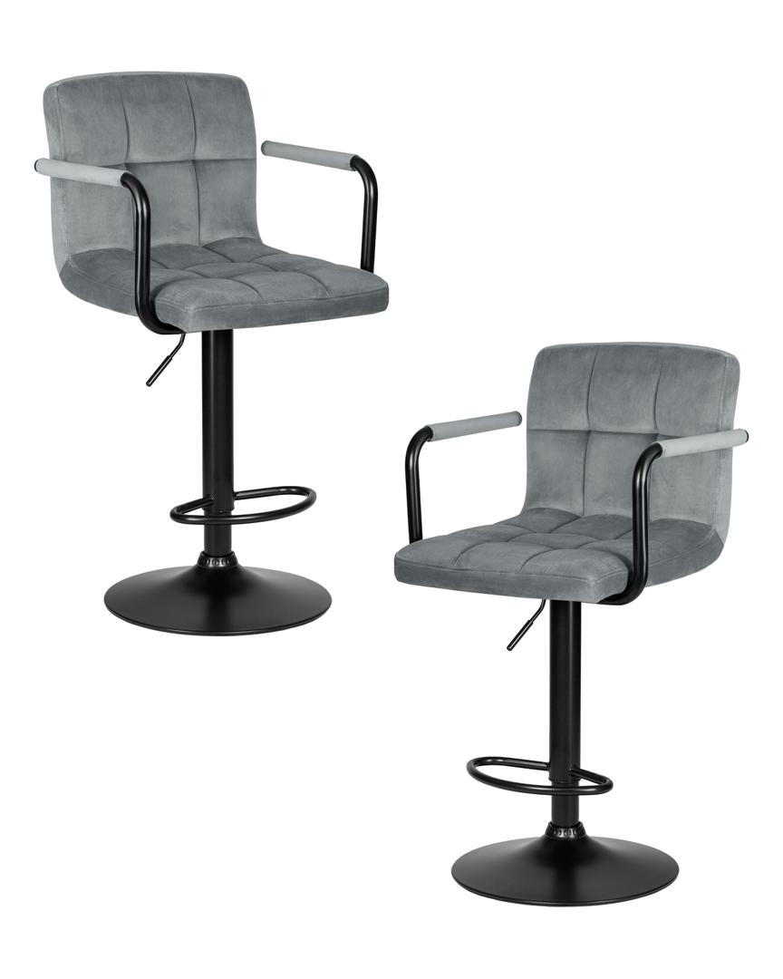 Наименование товара с характеристикой - Набор 2 шт Стул барный DOBRIN KRUGER ARM BLACK, серый велюр (MJ9-75)