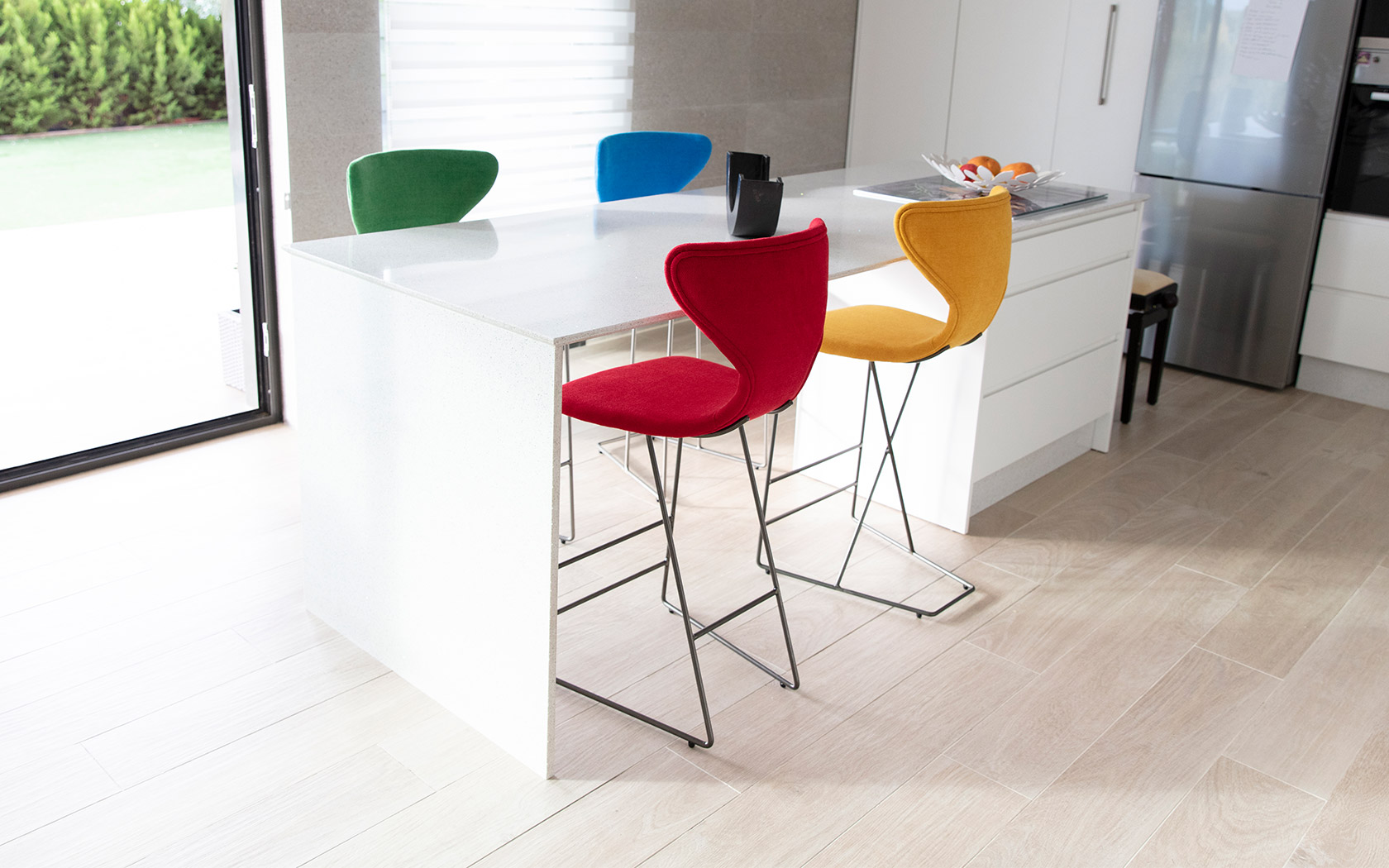 Мы представляем новый тип мебели, который наши клиенты постоянно требовали в течение последних нескольких лет: высокие стулья для кухонных баров, которые в настоящее время устанавливаются во многих домах с кухней открытого плана. Имея это в виду, мы создали Helga с деревянными ножками, а также Marlon, Denzel и Burt с металлическими ножками, все они доступны с 3-мя высотами сидений, 45 см (версия для кресла), 65 и 75 см (версия для табуретки). Они выделяются благодаря своему эргономичному дизайну и великолепному комфорту. Модели Denzel, Marlon и Burt в версии для стула (высота сиденья 45 см) могут использоваться в качестве самостоятельных декоративных элементов благодаря их металлическим ножкам без использования в качестве стульев для столовой.