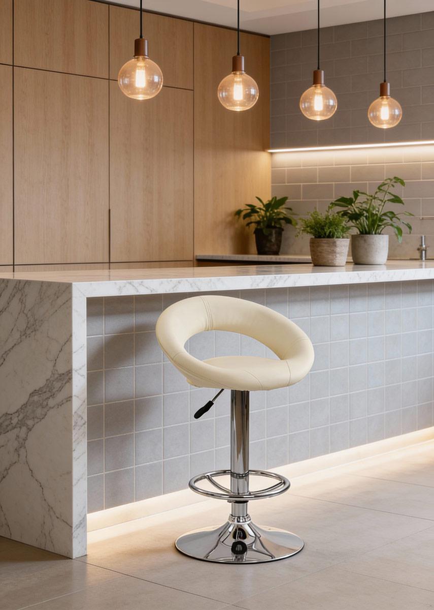 Вес, кг: 8,3 / Высота (см): 102 / Высота сидения (см): 61-82 / Гарантия, мес.: 12 / Глубина (см): 50 / Глубина сиденья (см): 40 / Количество коробок: 1 / Материал каркаса: сталь хромированная / Материал сидения: экокожа / Минимальная высота (см): 80 / Необходимость сборки: да / Размер упаковки 1: 0,29/0,53/0,55 / Страна производитель: Китай / Цвет: кремовый/хром / Ширина (см): 54