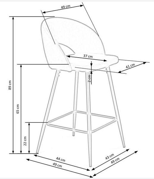 Вес, кг: 5,5 / Высота (см): 89 / Высота сидения (см): 65 / Гарантия, мес.: 12 / Глубина (см): 49 / Глубина сиденья (см): 37 / Количество коробок: 1 / Материал каркаса: металл / Материал сидения: вельвет / Необходимость сборки: да / Размер упаковки 1: 0,56/0,51/0,50 / Страна производитель: Китай / Цвет: черный / Ширина (см): 48