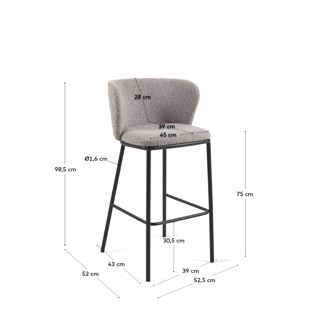 Стул барный La Forma (ех Julia Grup) Барный стул Ciselia светло-серый из ткани букле и металла 102 см арт. 110409
