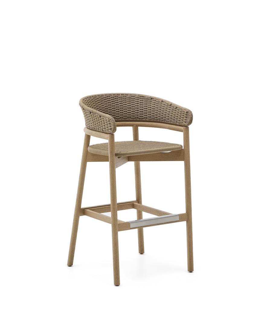 Стул барный La Forma (ех Julia Grup) Барный стул Arinella из массива акации с натуральной отделкой и бежевой веревкой, высота 75 см арт. 261801