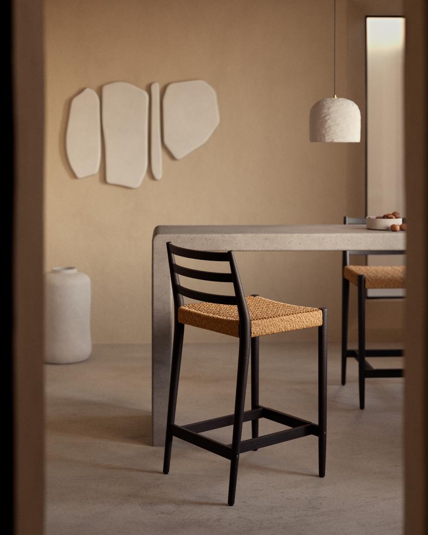 Стул барный La Forma (ех Julia Grup) Analy Барный стул из массива дуба с черной отделкой и сиденьем из веревки 70 см арт. 192031