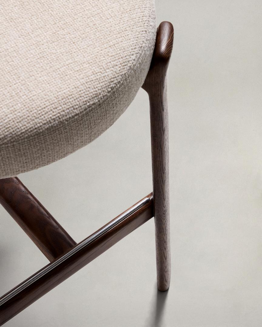 Стул барный La Forma (ех Julia Grup) Барный стул Granite из бежевого шенилла и ясеня с отделкой орех 75 см арт. 301963