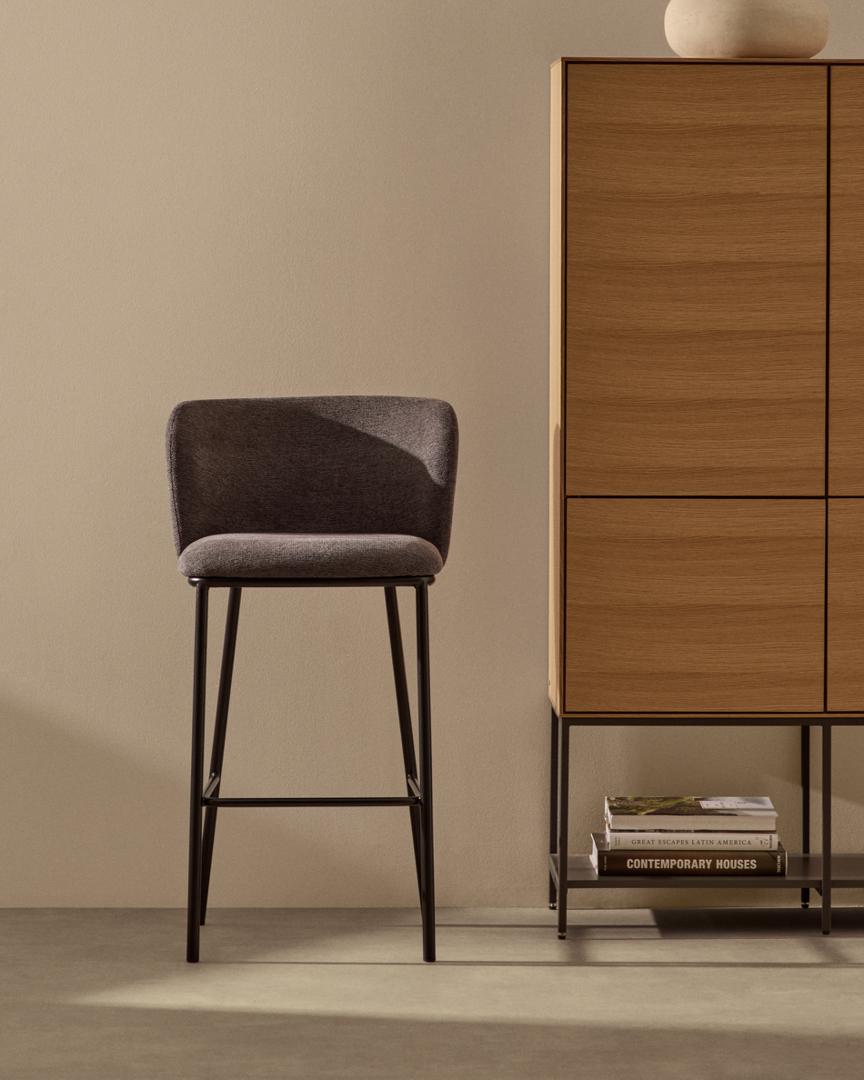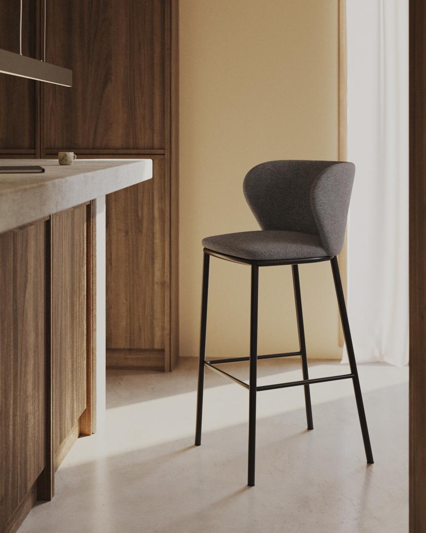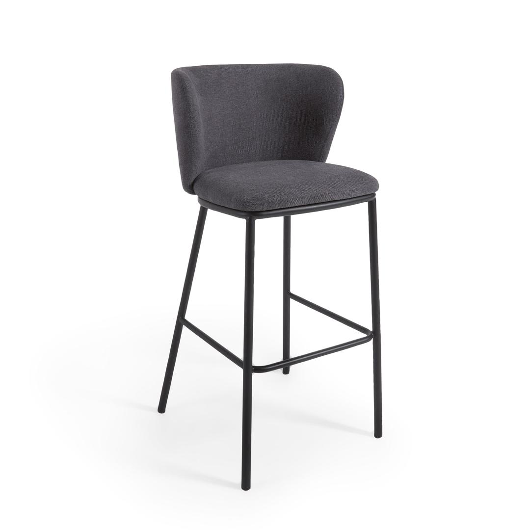 Стул барный La Forma (ех Julia Grup) Ciselia Барный стул из темно-серой синели и черной стали 75 см арт. 147832