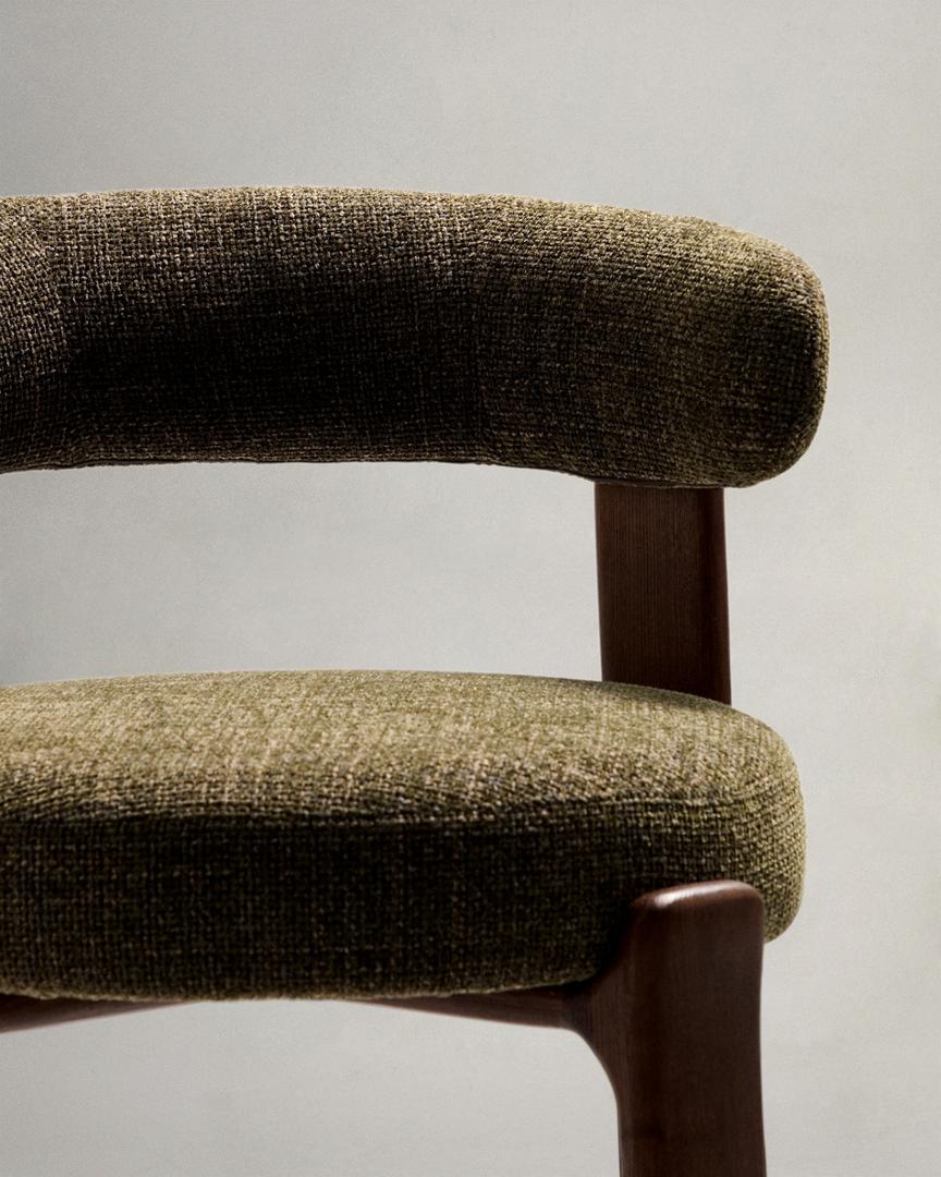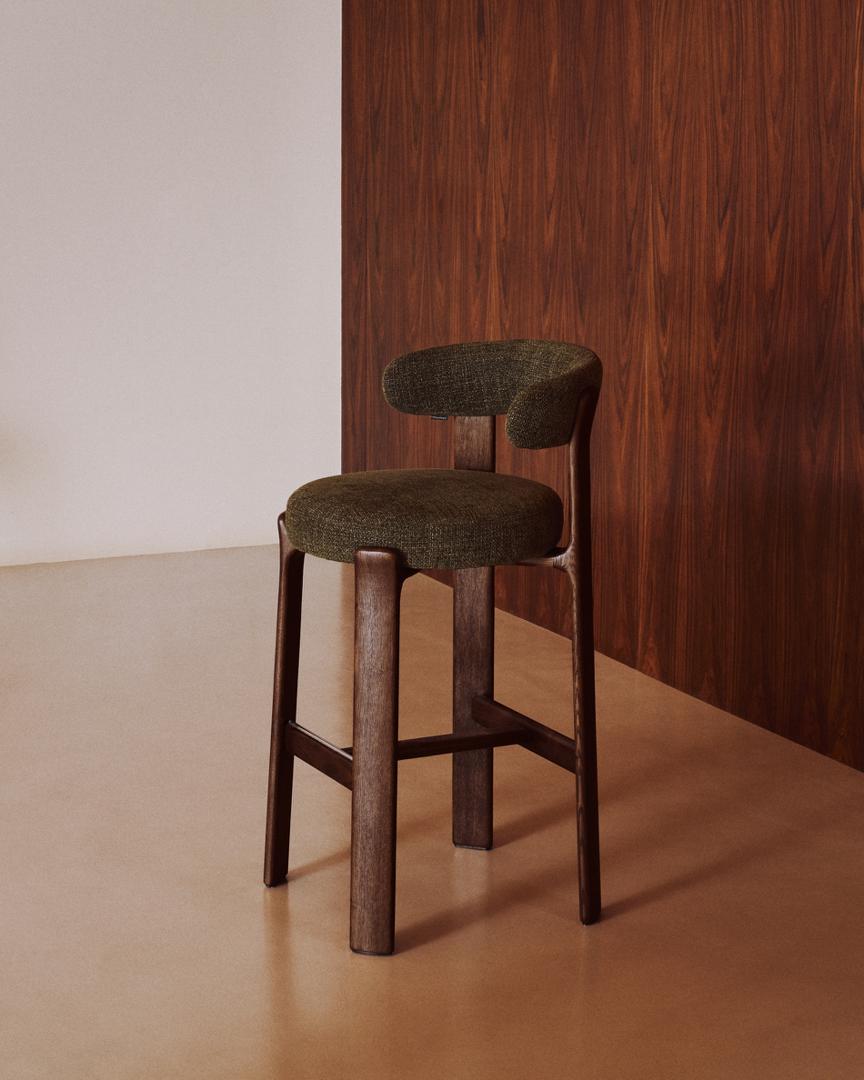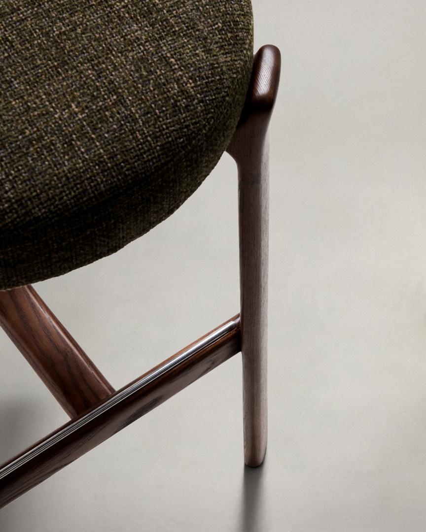 Стул барный La Forma (ех Julia Grup) Барный стул Granite из зеленой синели и ясеня с отделкой орех 75 см арт. 301965