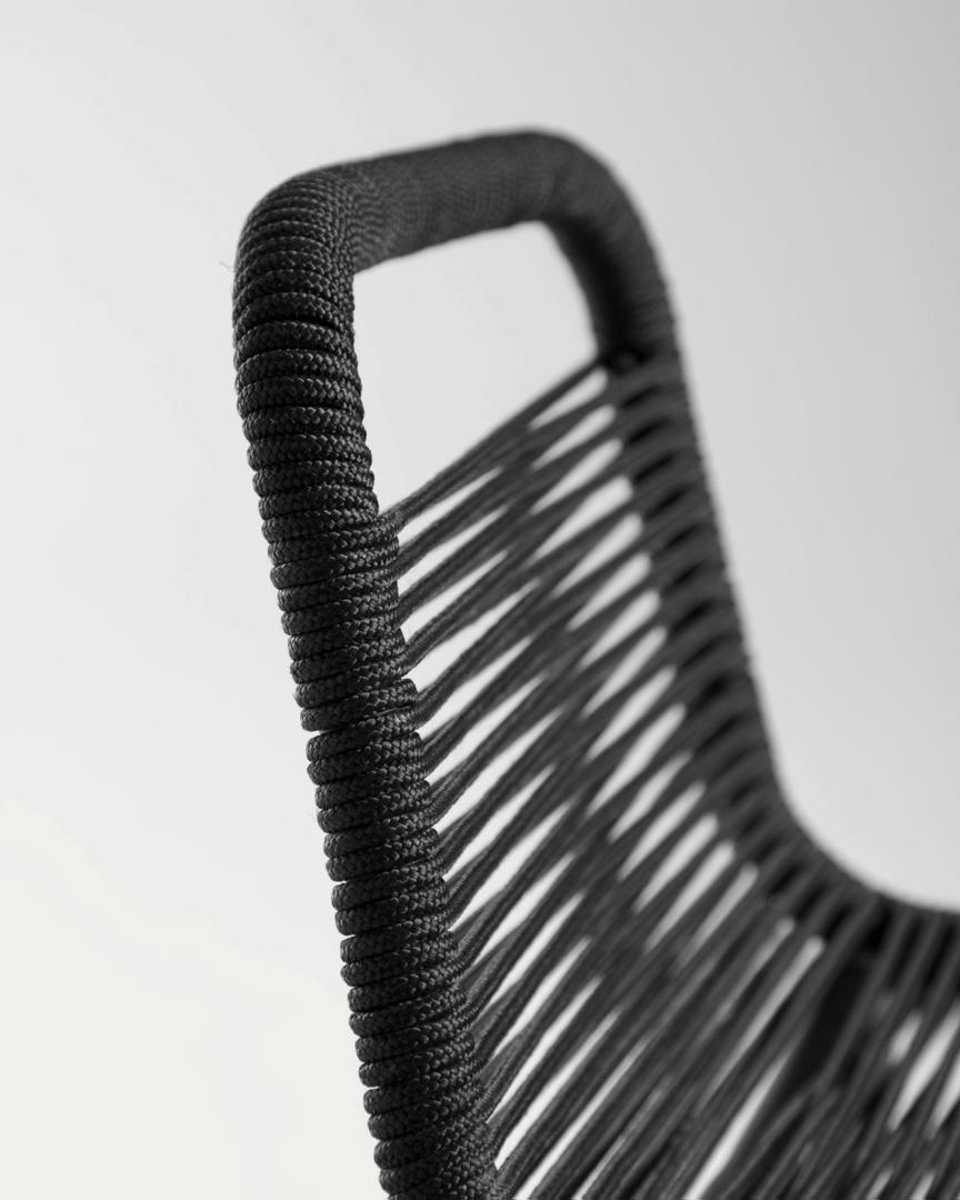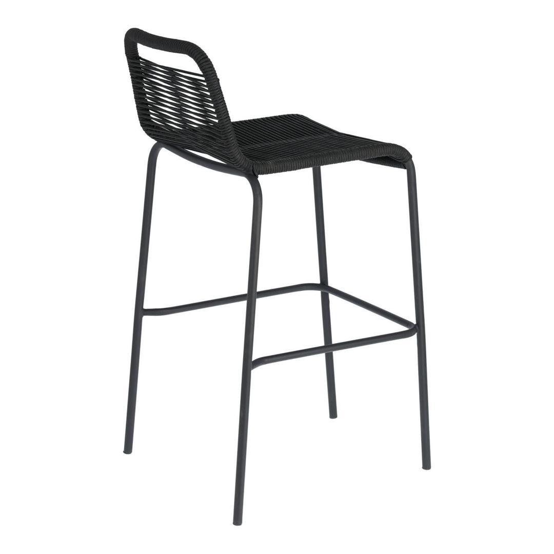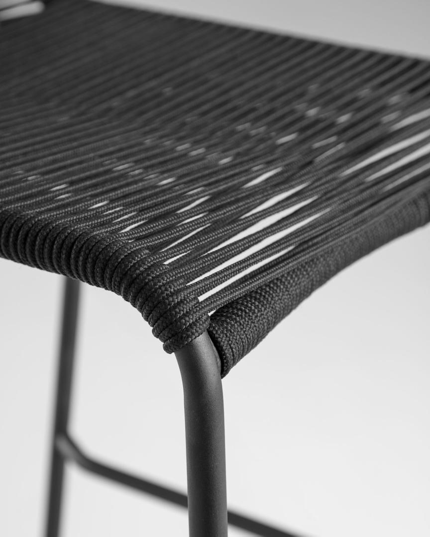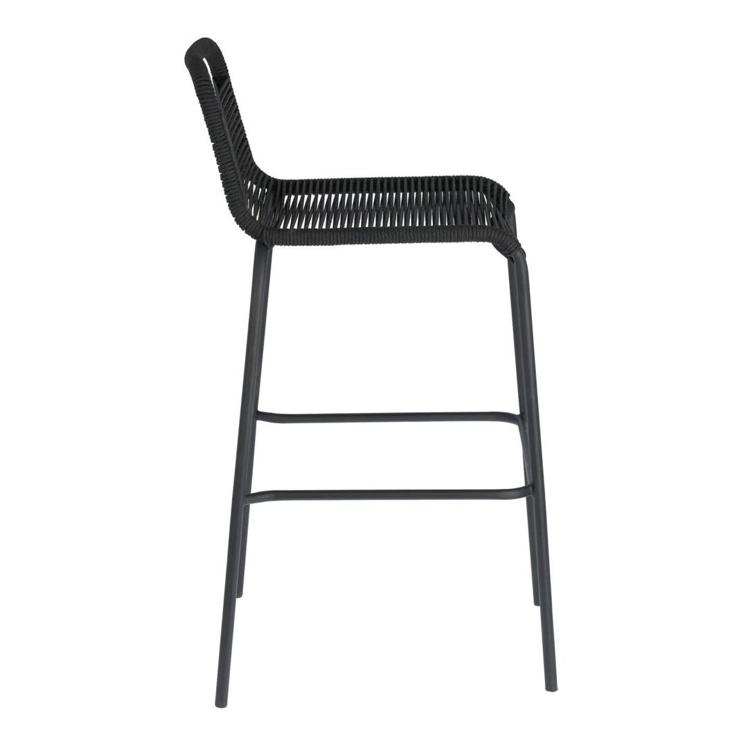 Табурет Lambton черного цвета имеет высоту 100 см. Сиденье сплетено вручную из полиэфирной веревки, которая защищает от ультрафиолетовых лучей, поэтому вы можете использовать его на улице в солнечные дни. Конструкция также изготовлена из оцинкованной стали, устойчива к ржавчине и коррозии и намного долговечнее обычной стали.