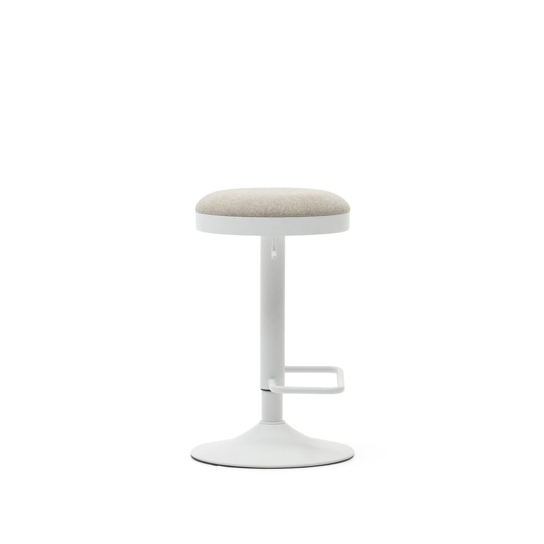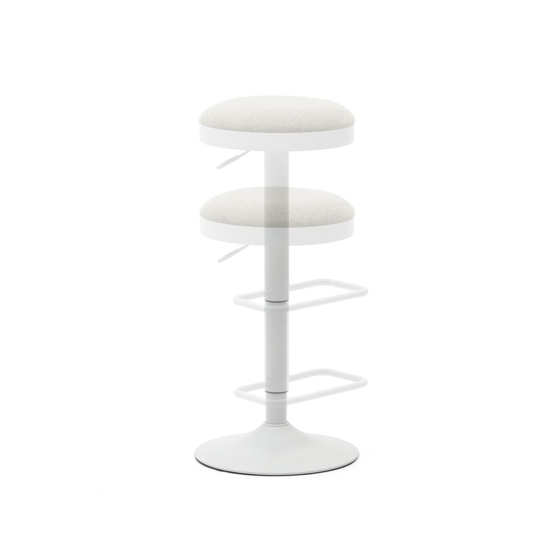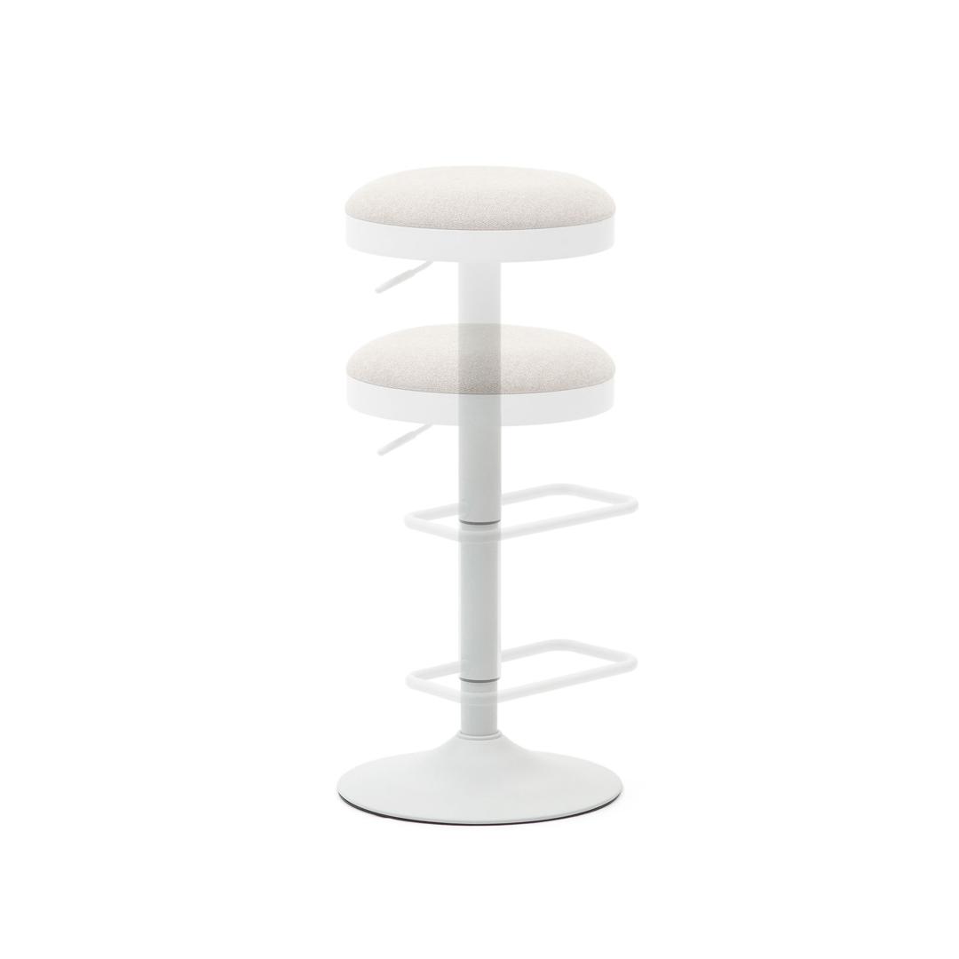 Стул барный La Forma (ех Julia Grup) Табурет Zaib из бежевой синели и белой матовой стали, высота 58-80 см. арт. 166643