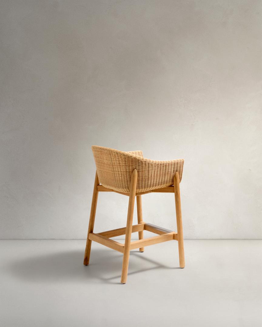 Стул барный La Forma (ех Julia Grup) Барный стул Galea из тикового дерева и синтетического ротанга, 75 см арт. 261899