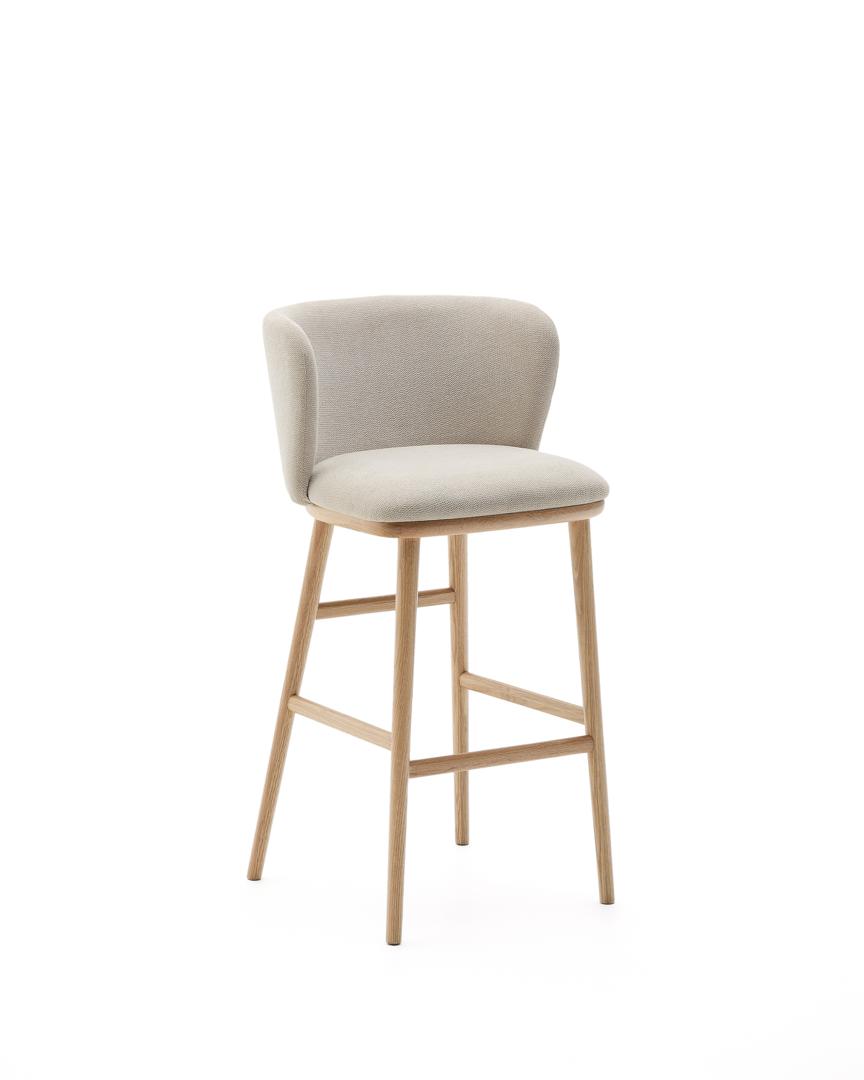 Стул барный La Forma (ех Julia Grup) Ciselia Барный стул из бежевой синели и натурального массива ясеня арт. 217219